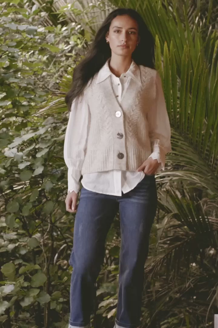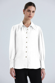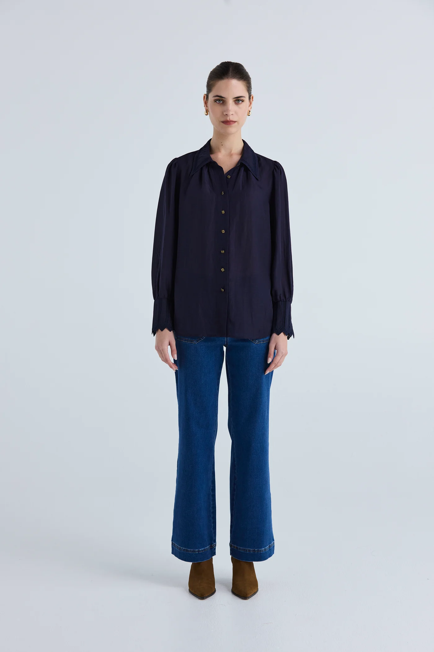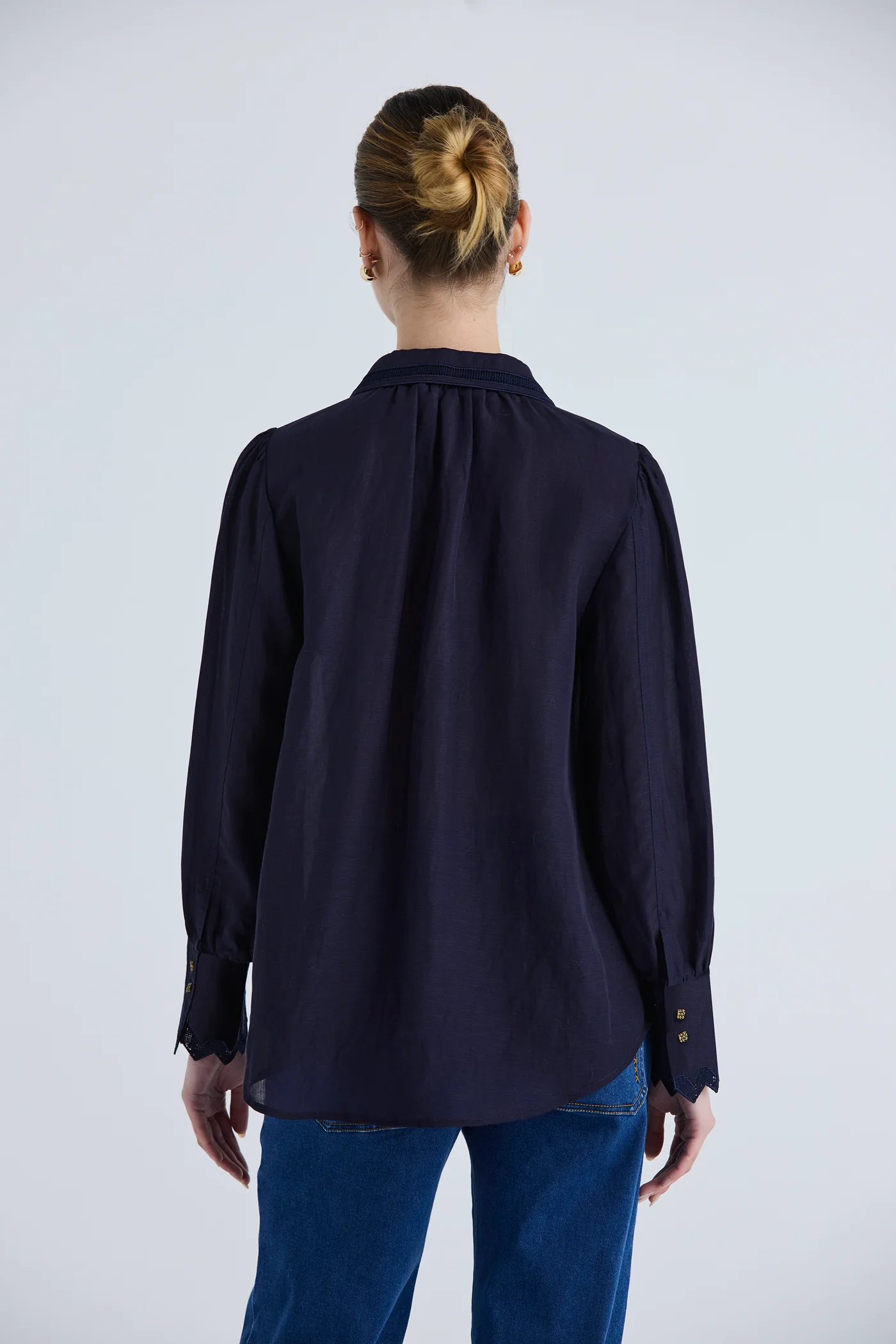 Elevate your wardrobe with the Lania Hazel Shirt, crafted from a luxurious Tencel-linen blend. This collared button-through design is enhanced with intricate embroidery at the sleeve cuffs and collar edge, adding a refined touch. Soft gathers at the neckline and sleeve head create a flattering silhouette, making it a timeless staple for effortless layering and versatile styling.