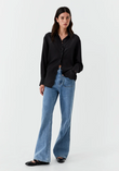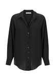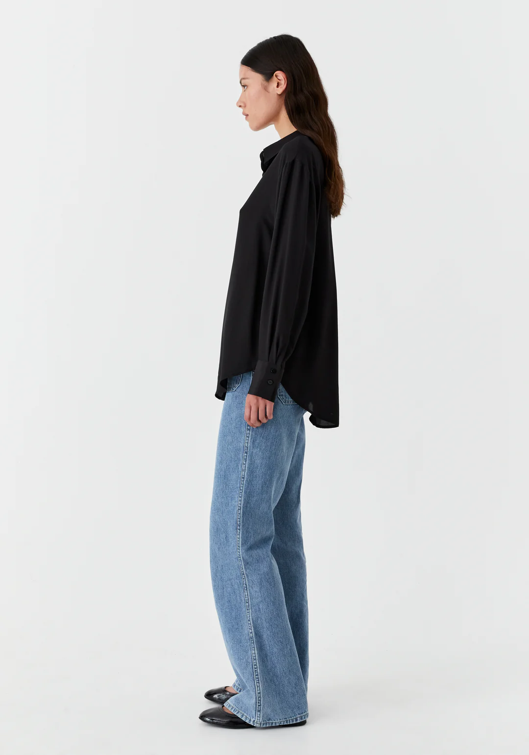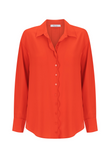 Designed with a dropped shoulder, full-length sleeves, and buttoned cuffs, it offers a relaxed yet polished silhouette. The straight fit and curved hem ensure easy styling—tuck it in for a structured look or wear it loose for effortless drape. Available in Black or Flame, the Hazel Silk Shirt is a wardrobe staple for any occasion.