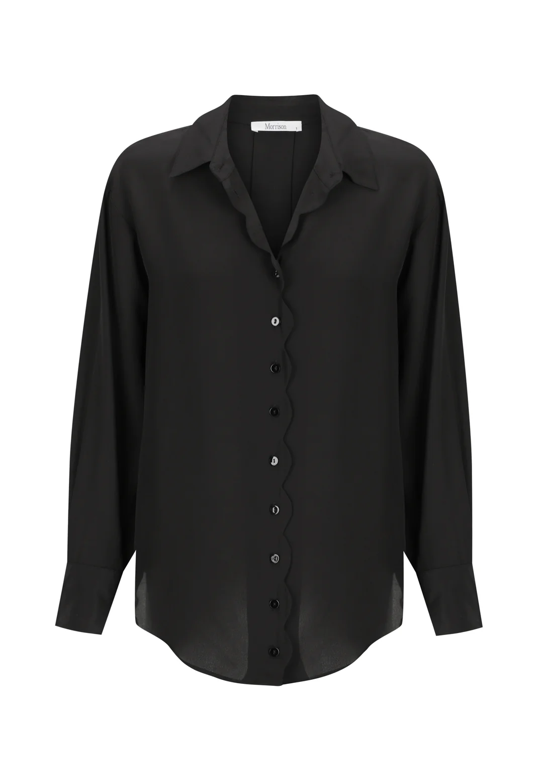 The Hazel Silk Shirt by Morrison is an effortless blend of elegance and versatility. Crafted from luxurious silk crepe, this timeless style features a traditional collar and a scalloped front placket for a refined touch.