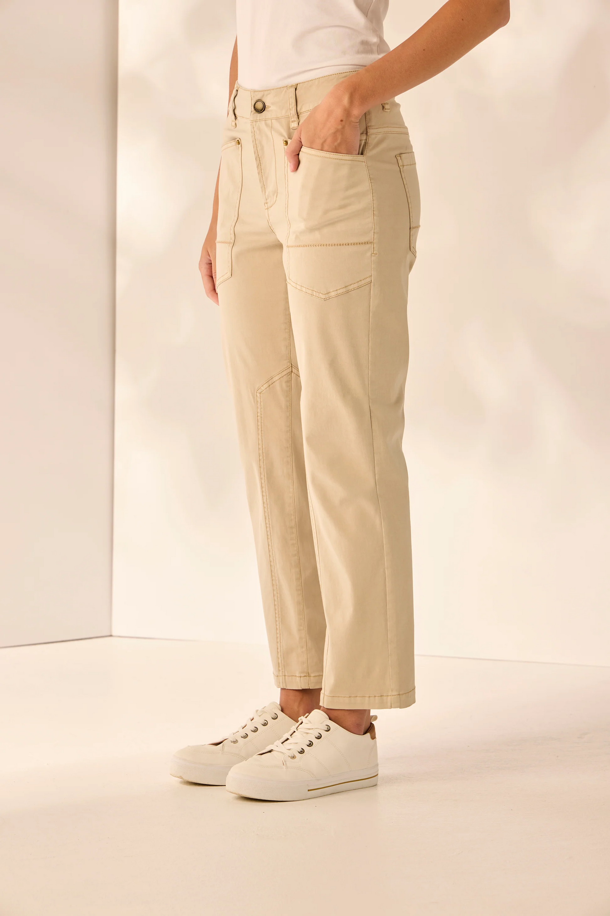 The Lania Heather Pant brings a modern edge to soft, breathable modal with its relaxed fit and thoughtful detailing. Featuring patch pockets front and back, this style is enhanced with subtle embroidery stitching and contrast topstitching for added interest. An inner leg panel provides gentle structure, making it an effortless yet elevated choice for everyday wear.