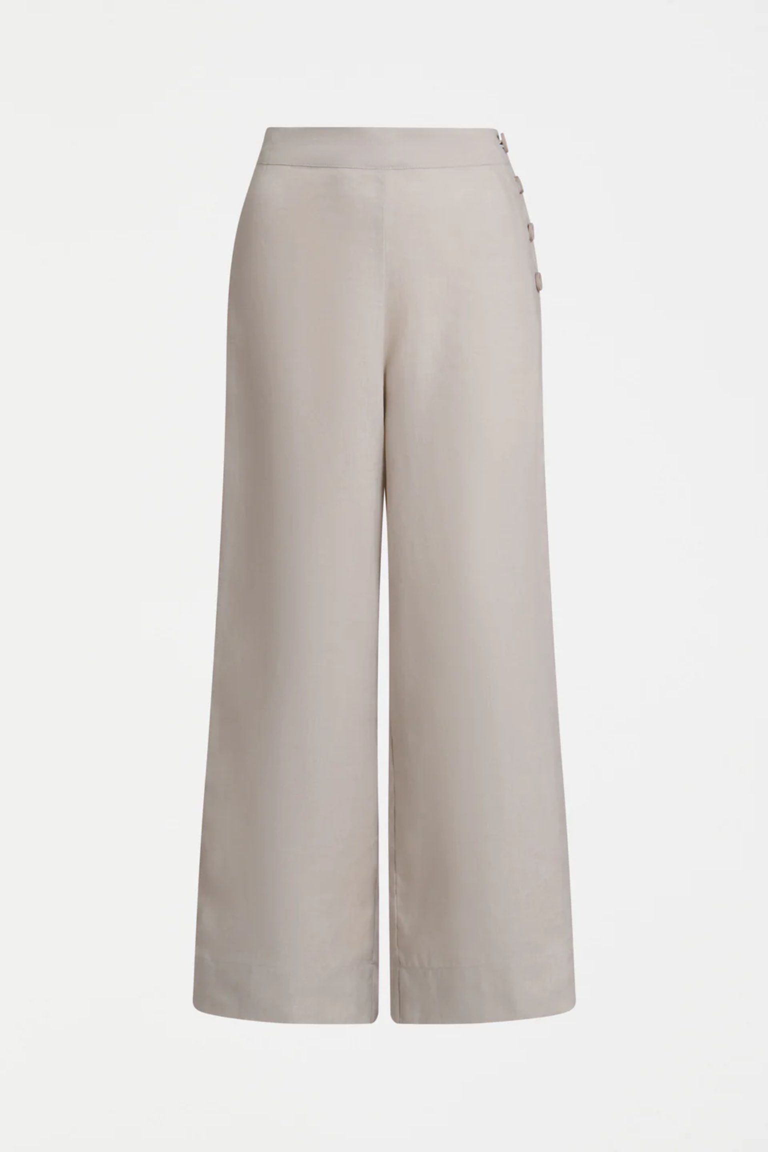 Effortlessly tailored and endlessly versatile, the ELK Hersom Pant is crafted from 100% French linen for breathable, lightweight wear. Designed with a flattering high waist and straight leg silhouette, it features a button tab closure at the side, subtle faux back welt pockets, and a wide cuff hem for easy styling.