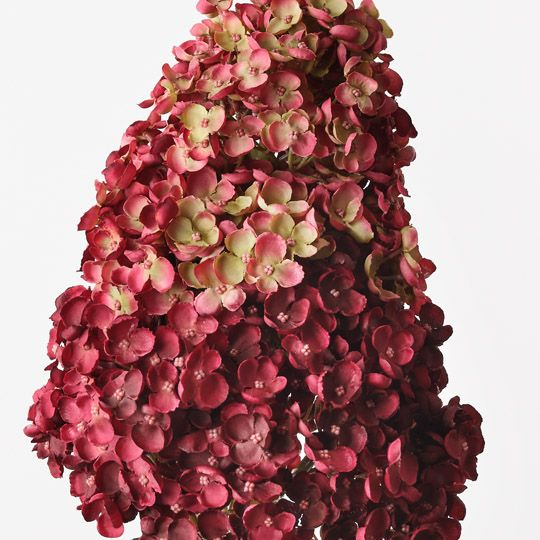 The Floral Interiors Hydrangea Cone in Burgundy makes a bold statement with its oversized, dramatic bloom. Its deep burgundy tones bring richness and elegance, perfect for adding depth to floral arrangements. A stunning choice for eye-catching displays.