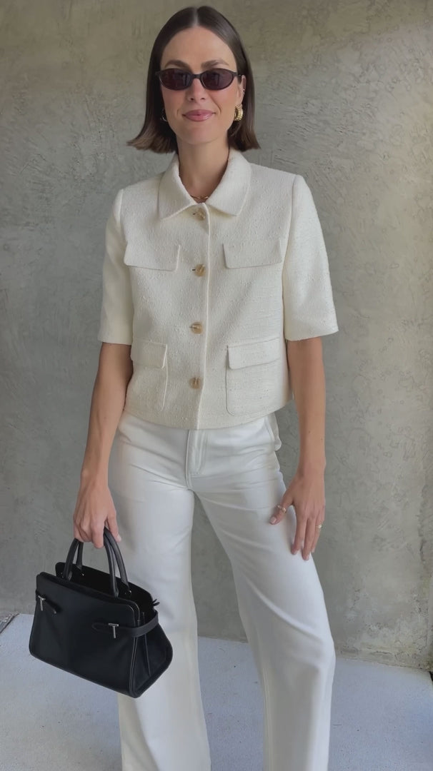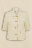 The Zoe Kratzmann Juncture Jacket in Alabaster perfectly balances structured tailoring with effortless wearability. Crafted from a cotton-blend and fully lined with stretch for comfort, it features a sharp collar, elbow-length sleeves, and a flattering cropped length. The vintage-inspired off-white hue is elevated with contrast shell buttons and four-pocket detailing, giving a nod to classic workwear with a refined finish. Versatile enough to wear as a jacket or layered as a shirt—this is everyday dressing, elevated.
