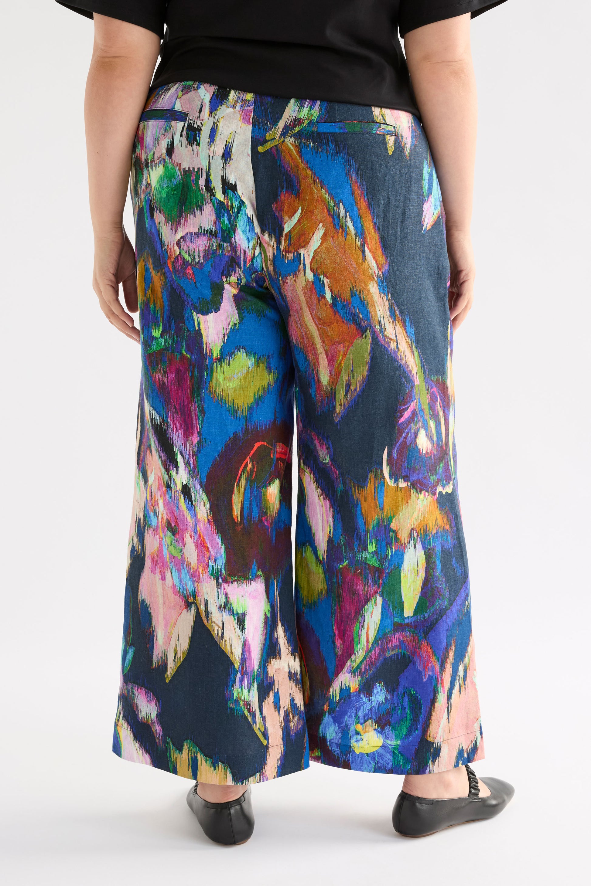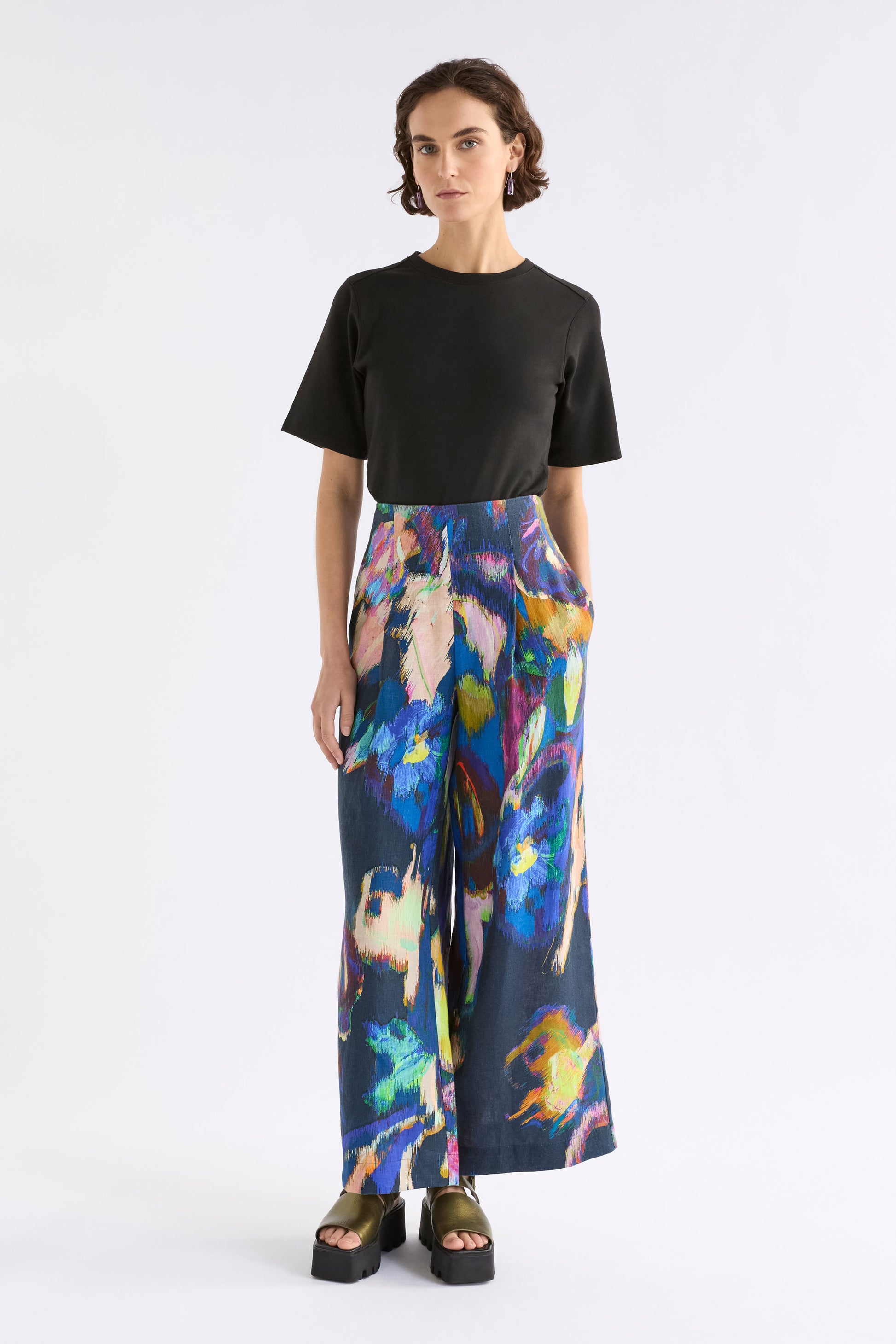 Make a statement with the vibrant Lato Pant in ELK’s exclusive Vaara print. Crafted from a textured waffle crepe, this high-waisted style features a fixed waistband with soft front tucks that create volume through the leg, while back darts gently shape the waist.