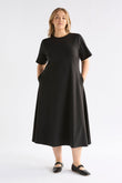 Effortless and flattering, the ELK Mana Scuba Dress is your new everyday essential. Crafted from a soft and structured organic cotton blend with a hint of stretch, it offers all-day comfort with a polished finish. The clean silhouette and minimal design make it perfect for layering or wearing solo—easy to dress up or down.