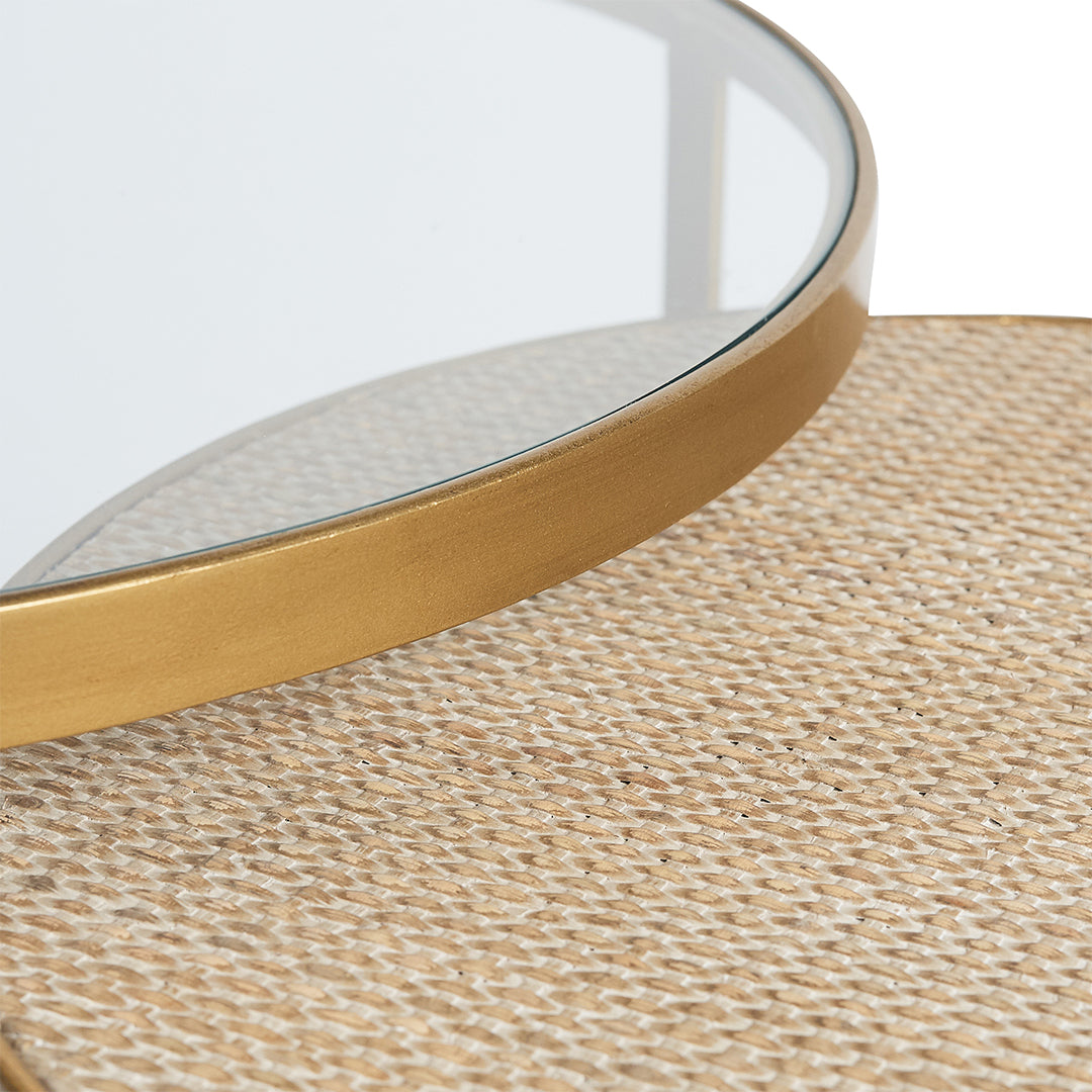 Drawing inspiration from the timeless French design of the 1940s, the Manhattan Nesting Coffee Table Set elegantly blends opposing elements.