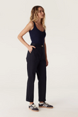 Pair the Mari pant in Navy with the Crepe Scallop Tee in White for an effortlessly stylish outfit.