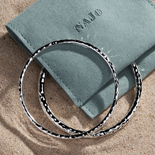 Crafted by master silversmiths in Taxco, Mexico—where the NAJO story began—this sterling silver bangle showcases a hand-hammered, celestial-inspired texture. Whether worn as an elegant talisman or a shimmering statement piece, it serves as a beautiful reminder to follow your dreams.