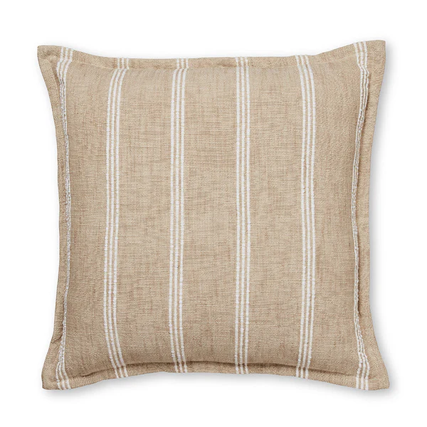The Madras Munro Sand Stripe Cushion offers a timeless charm with its neutral palette and classic design—a double-sided textured handwoven base featuring raised slub stripes and a subtle flange detail, perfect for adding understated elegance to any space.