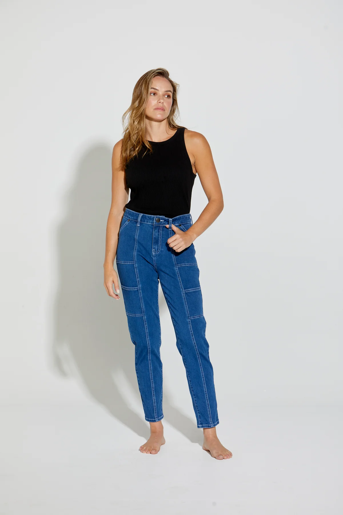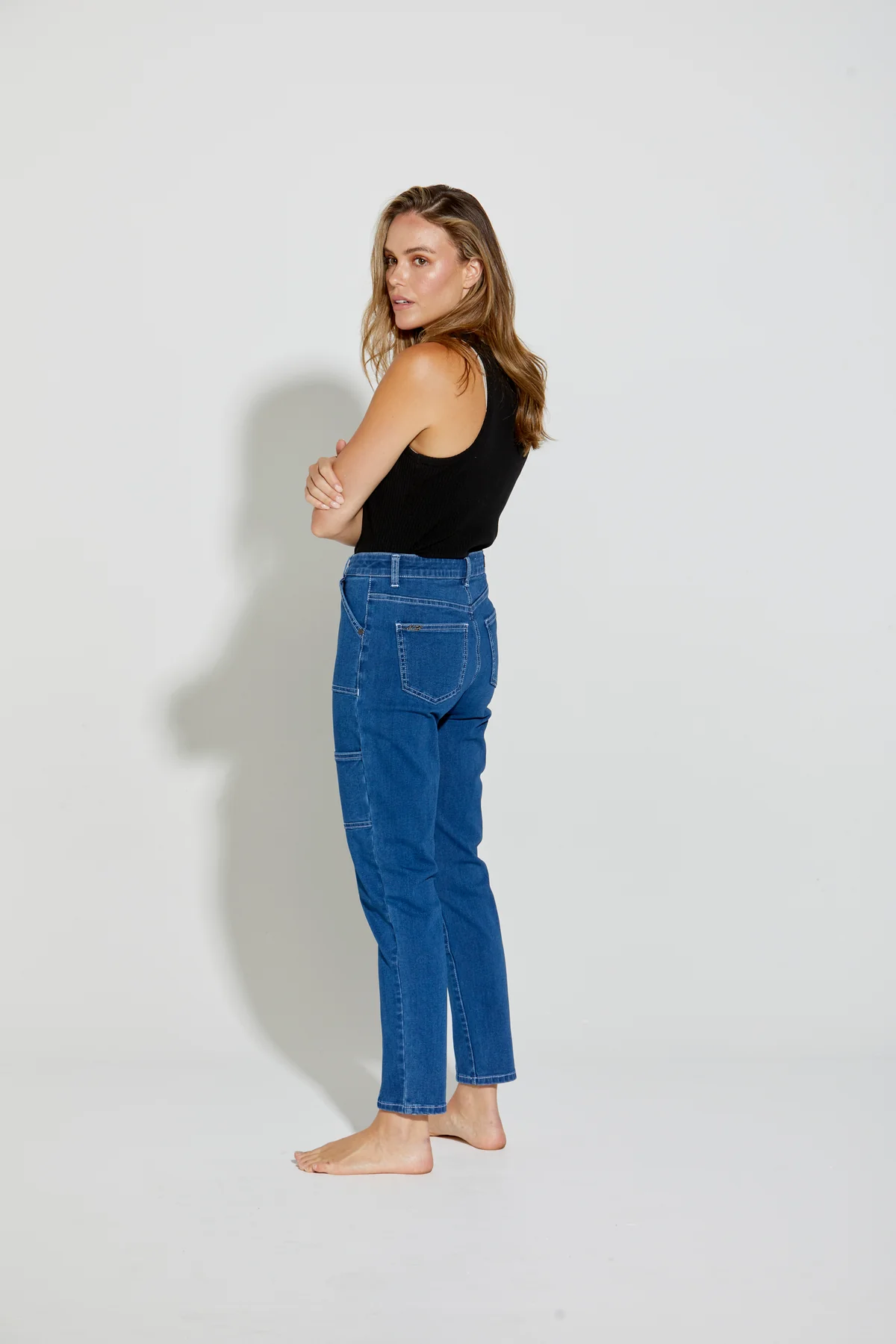 The New London Lexham Jeans offer a modern take on the classic cargo style, featuring a mid-rise fit that sits comfortably on the waist. Crafted from 2-way stretch denim, these jeans are made of 98% cotton and 2% spandex, providing both comfort and flexibility. Designed for a clean, streamlined look, they effortlessly blend utility with style.