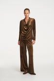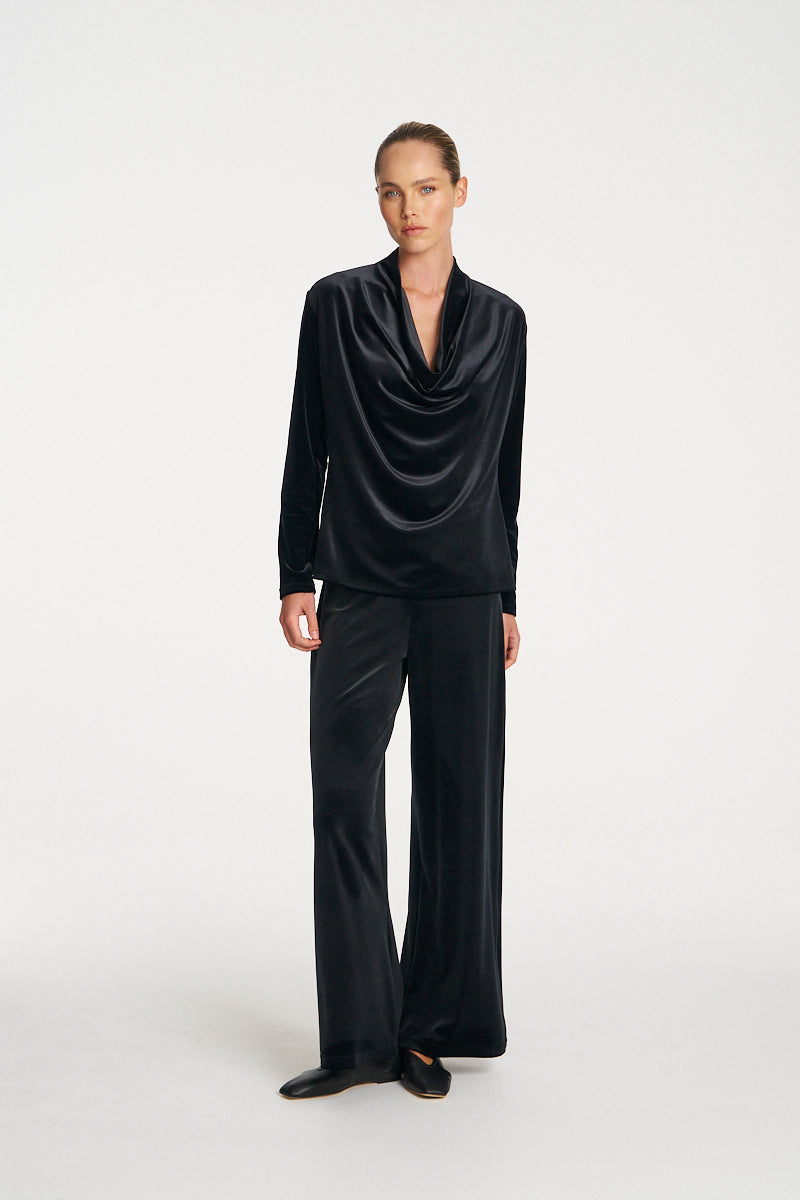 Crafted from Mela Purdie's Stretch Panne, a midweight velvet, featuring a subtle lustre finish. The Palazzo Pant offers a comfortable and flattering wide leg silhouette, featuring an elasticated waistband. An essential pant in a elevated fabrication.