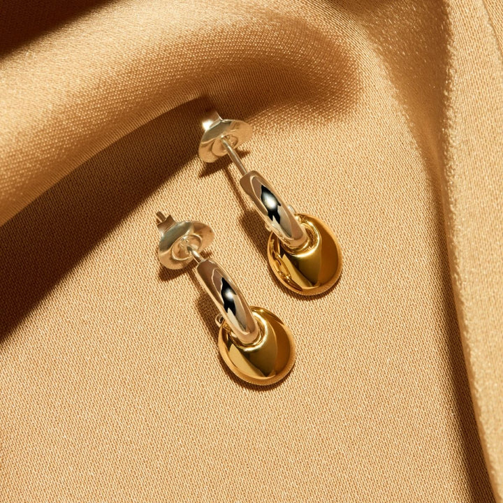 Adorn them with their swinging polished pebbles as talismans of serenity, embracing the soothing influence of water-inspired design. Alternatively, remove the charms and enjoy the contemporary curled hoops on their own, exuding a chic and stylish appeal. These versatile earrings effortlessly complement any ensemble, allowing you to express your unique style and elevate your look with ease.