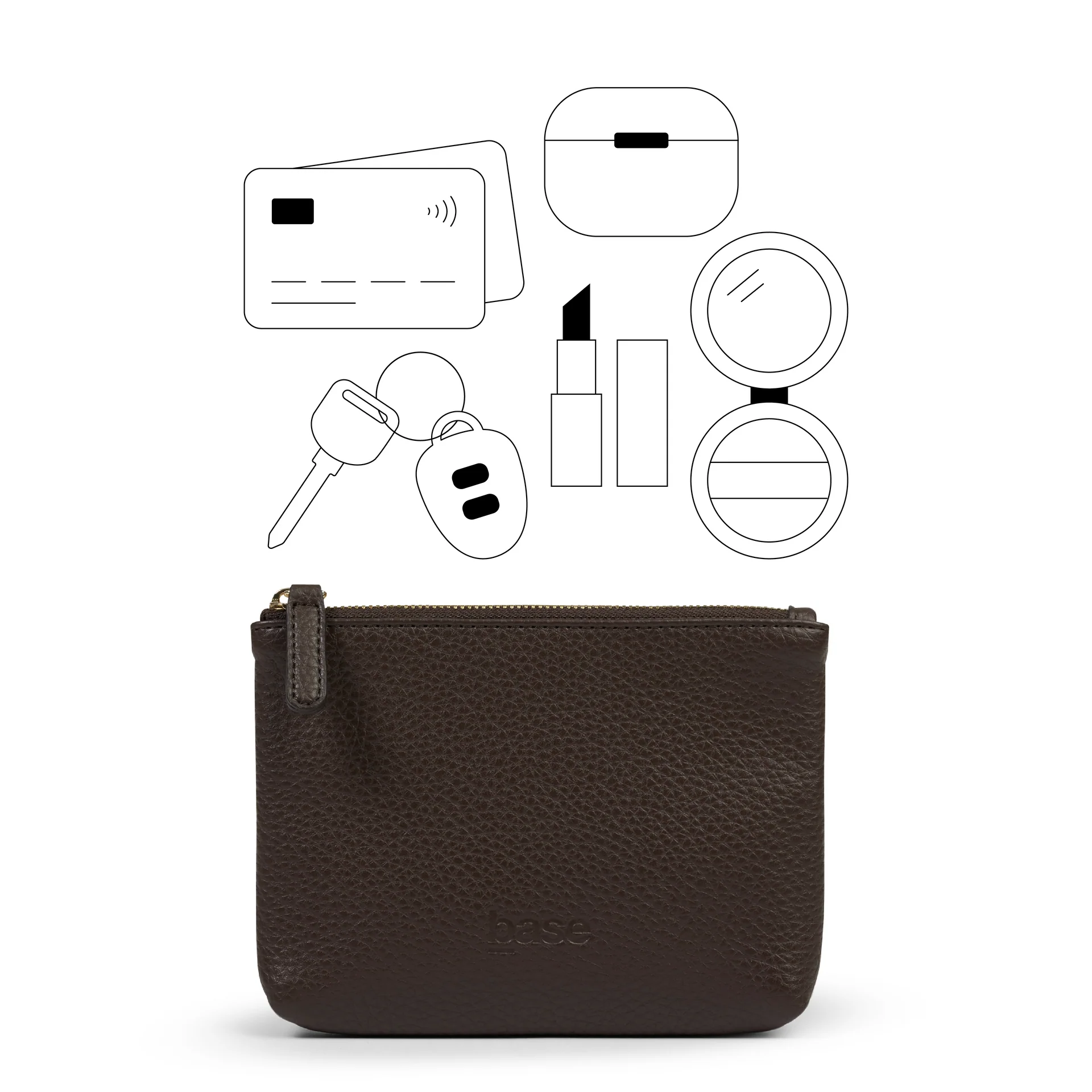 Meet the Petite Base – your go-to pouch for life’s little essentials. Compact yet surprisingly spacious, it’s designed to keep lip gloss, keys, cards, and other mini must-haves neatly organised. With its sleek minimalist design and touch of luxe, it slips effortlessly into your tote or works beautifully on its own for quick grab-and-go moments. Everyday convenience, elevated.