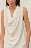 Crafted in Mela Purdie's classic matte finish Powder Knit, the 'Drape Shell' is an elegant classic with a modern twist. Featuring a fluid cowl neck and a flattering fit with curved hemline.