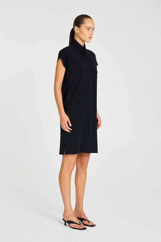 The Mela Purdie Henley Dress is a flattering & versatile trans-seasonal piece featuring a cap sleeve and button closure through the collar. Crafted from Mela Purdie's signature Powder Knit, offering a relaxed drape and fluid nature.