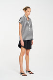 This flattering and versatile tank is cut in Mela Purdie’s signature Yacht Stripe Jersey, offering stretch comfort with a polished finish. Featuring a tab and button closure at the neckline, cap sleeves, and side splits for ease of movement, it’s the perfect trans-seasonal piece to layer or wear solo. A reliable staple with timeless appeal.