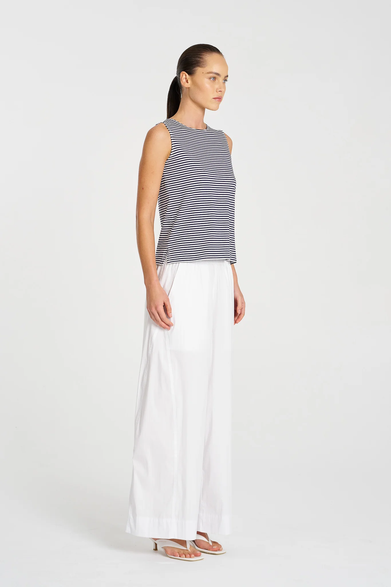 Crafted from Mela Purdie’s signature Yacht Stripe Jersey, this core silhouette is soft, stretch-friendly, and easy to wear. The rounded neckline and relaxed fit make it endlessly practical, while small side splits give freedom of movement and a touch of ease.