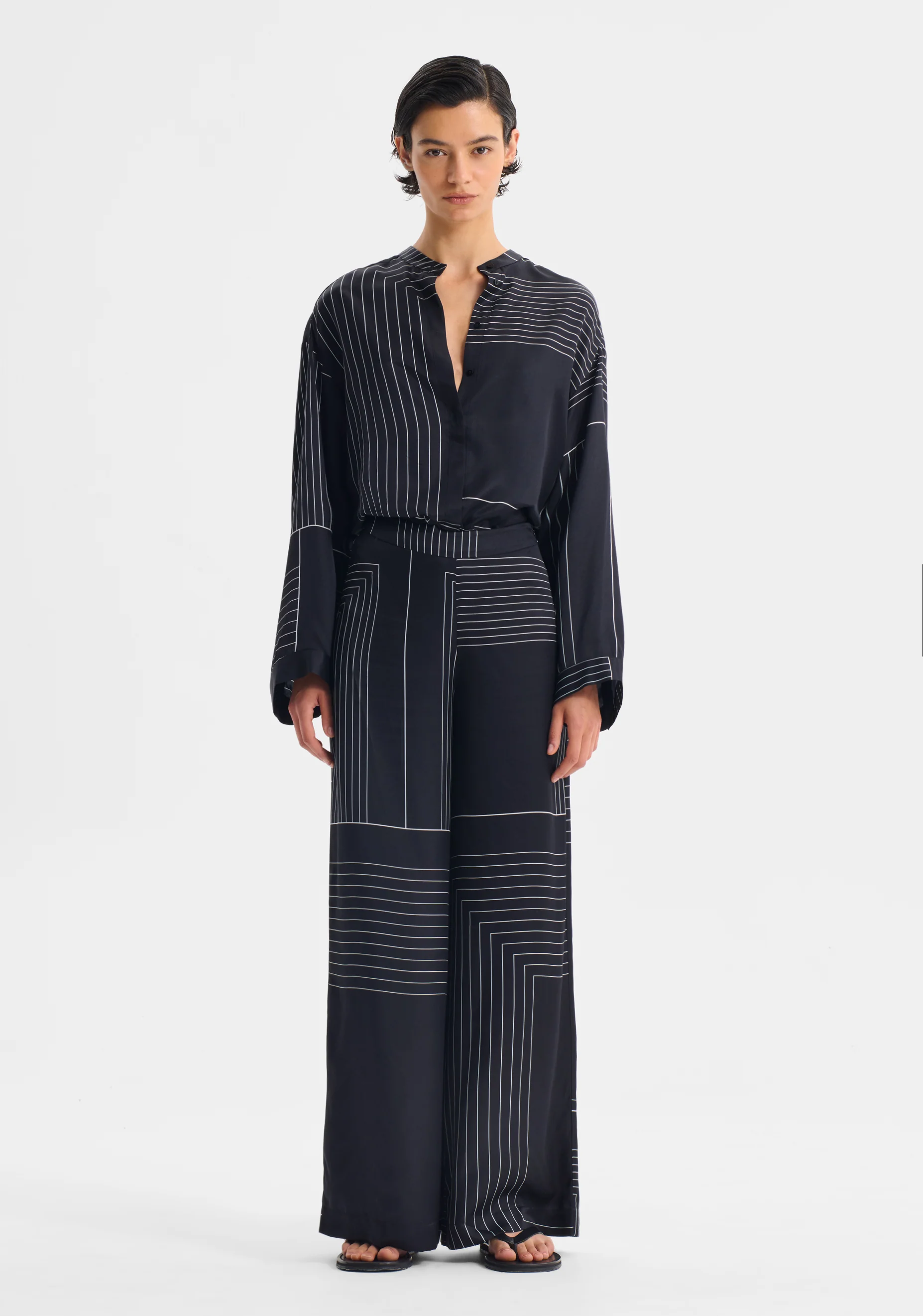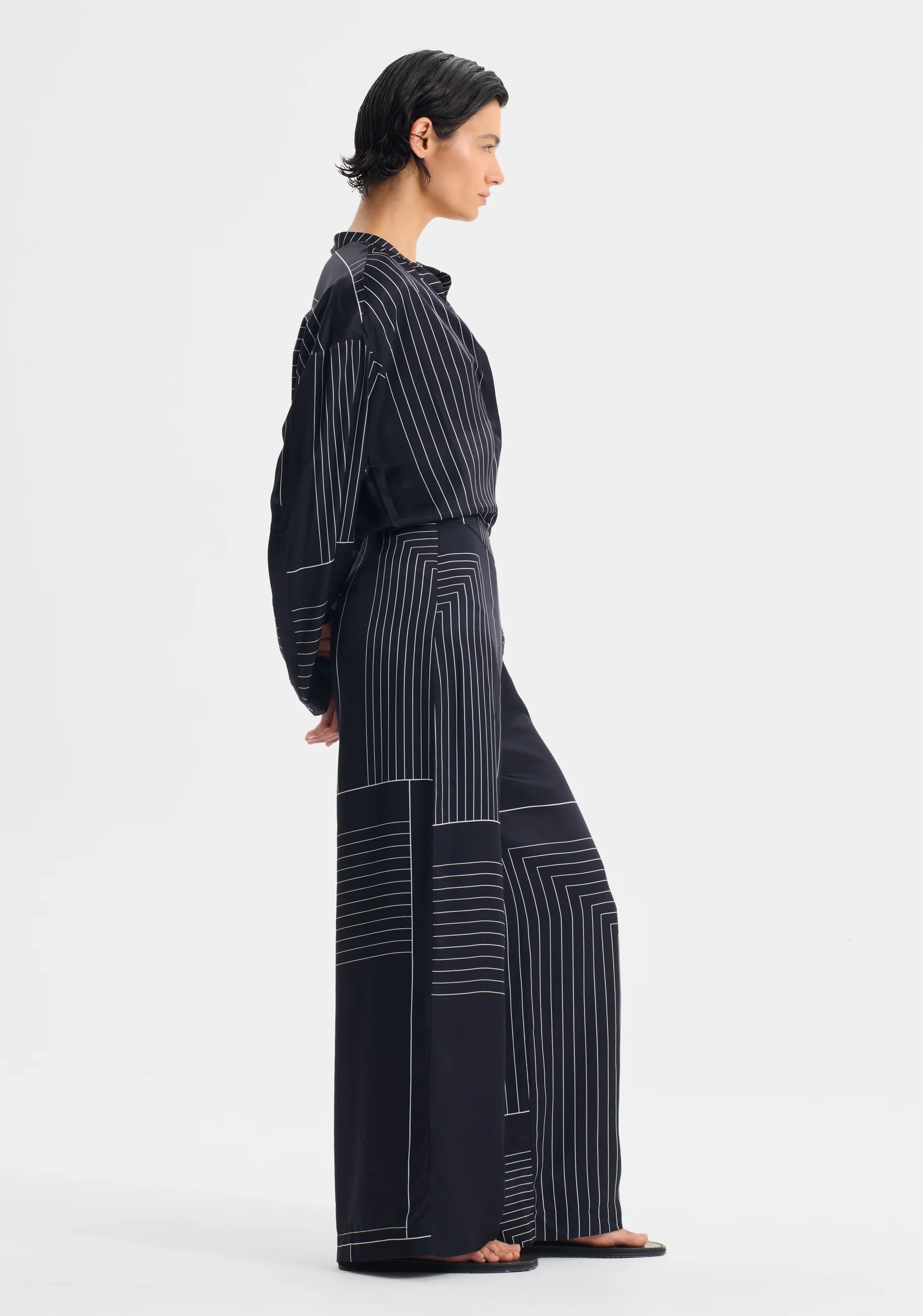 Crafted from a luxurious silk blend, the Morrison Priya Pant features an exclusive print in a striking wide-leg silhouette. Designed to sit high on the waist, these full-length trousers offer effortless drape and elegant movement—perfect for elevated everyday wear.