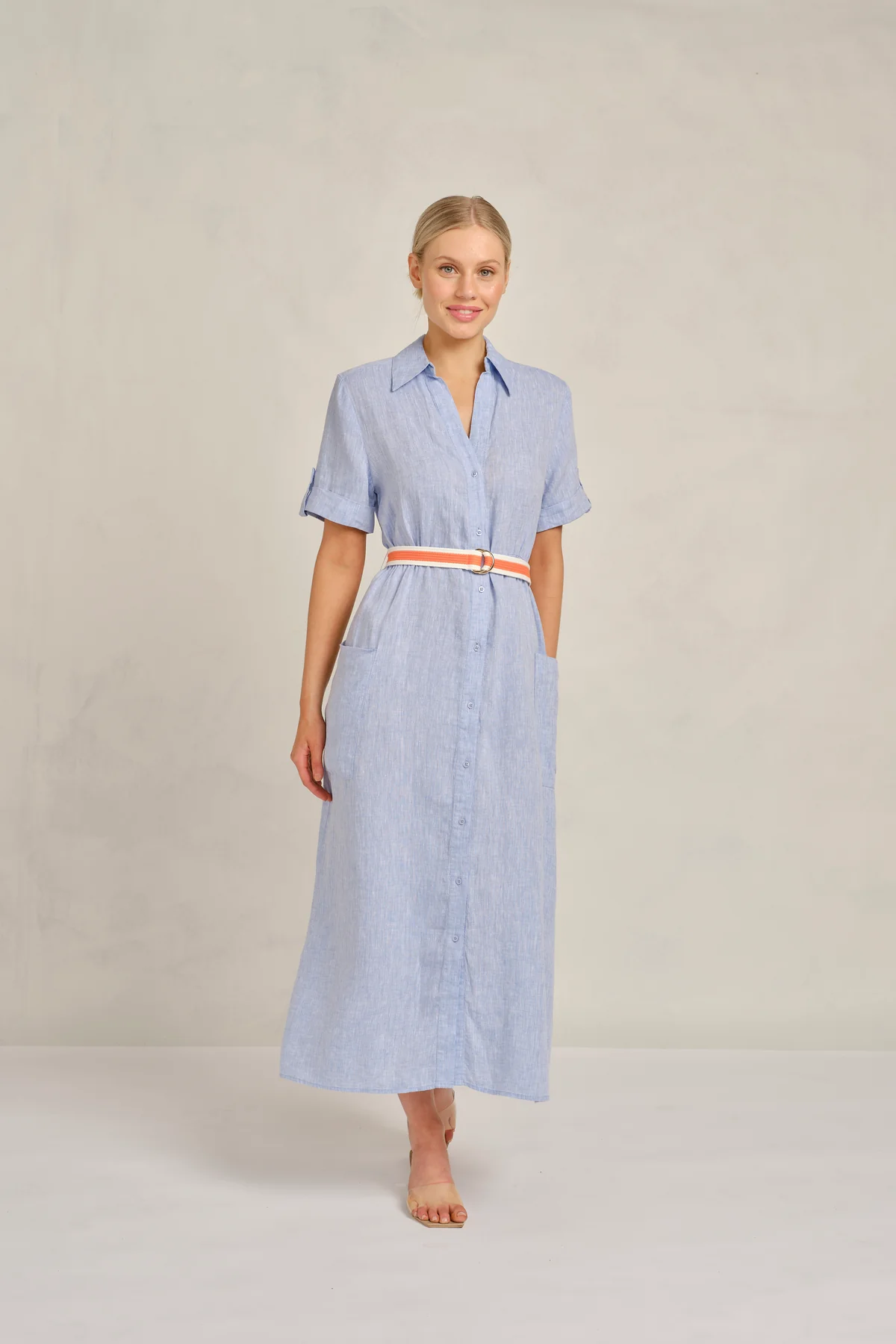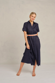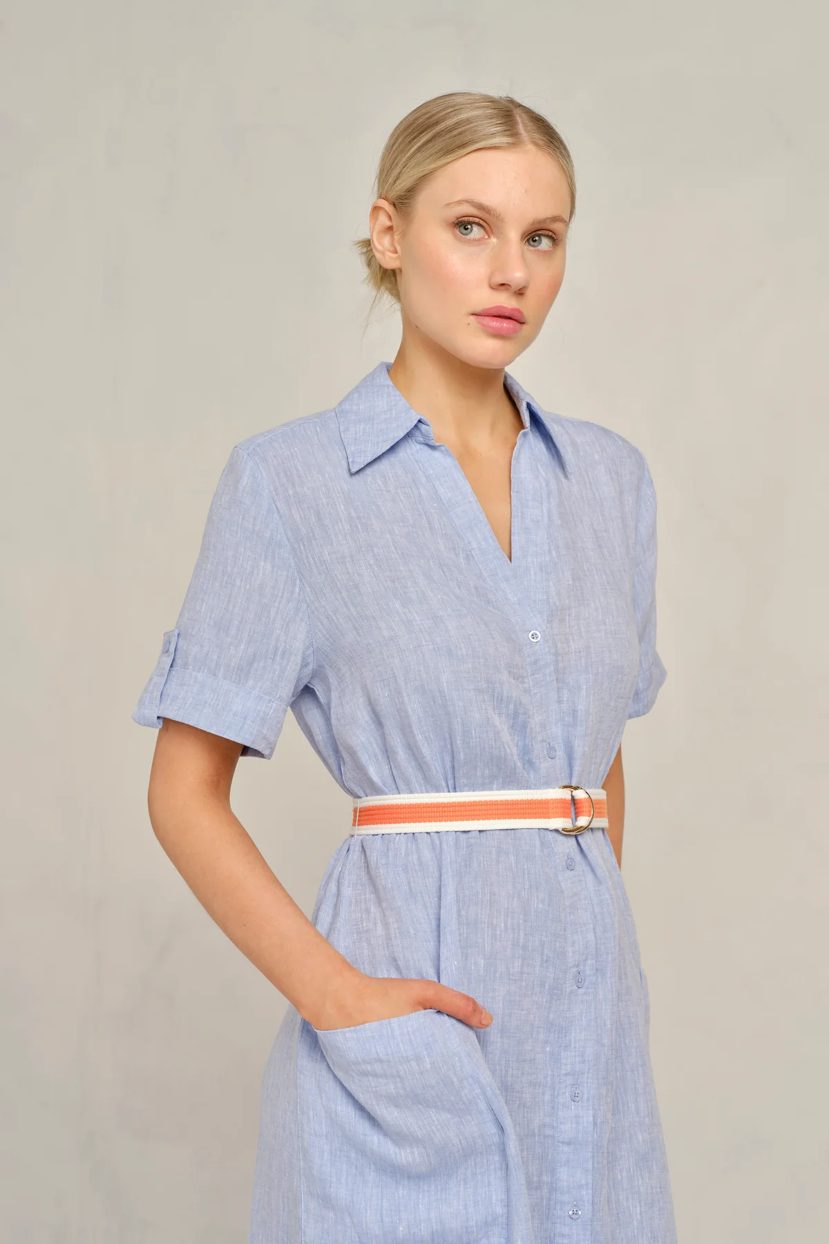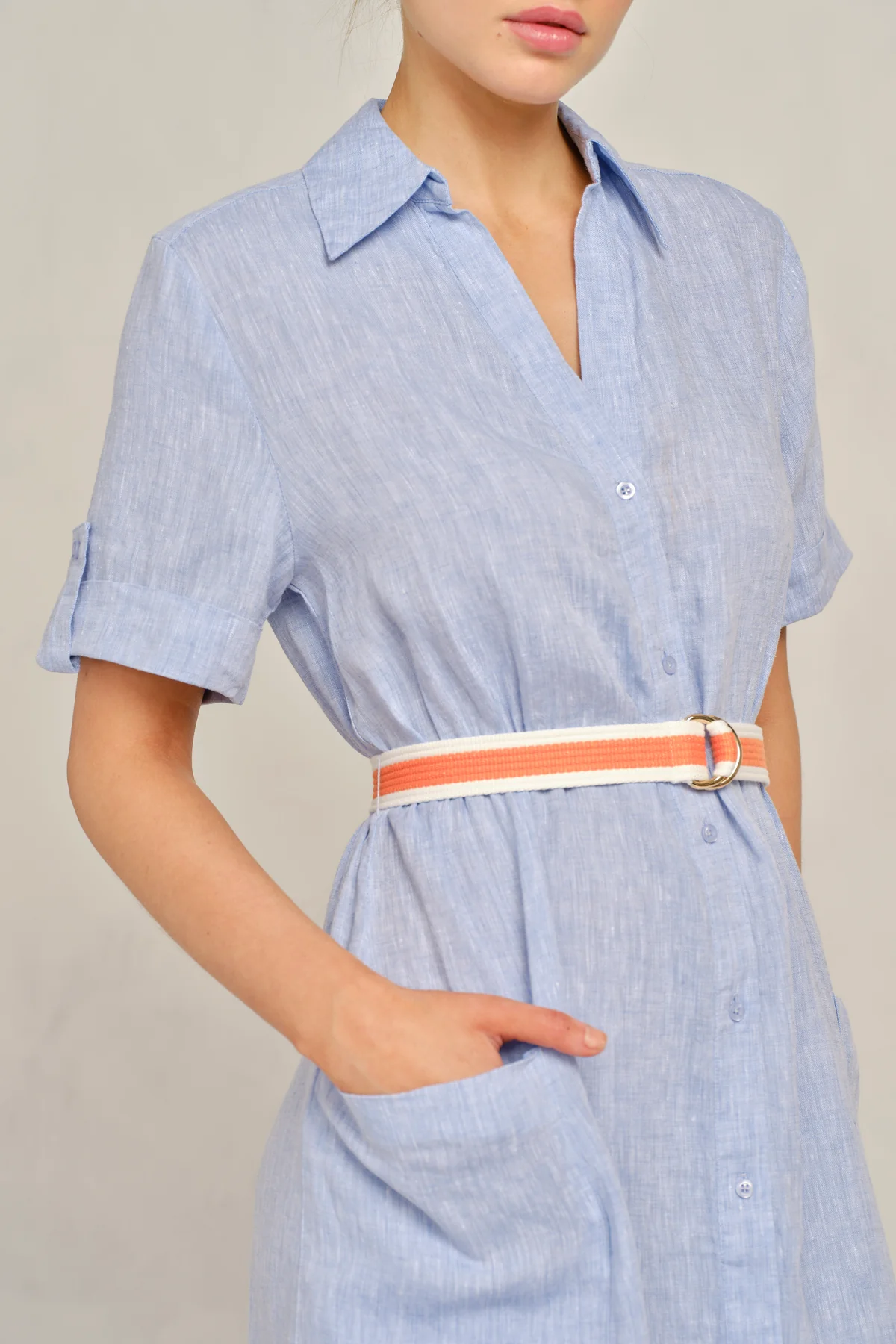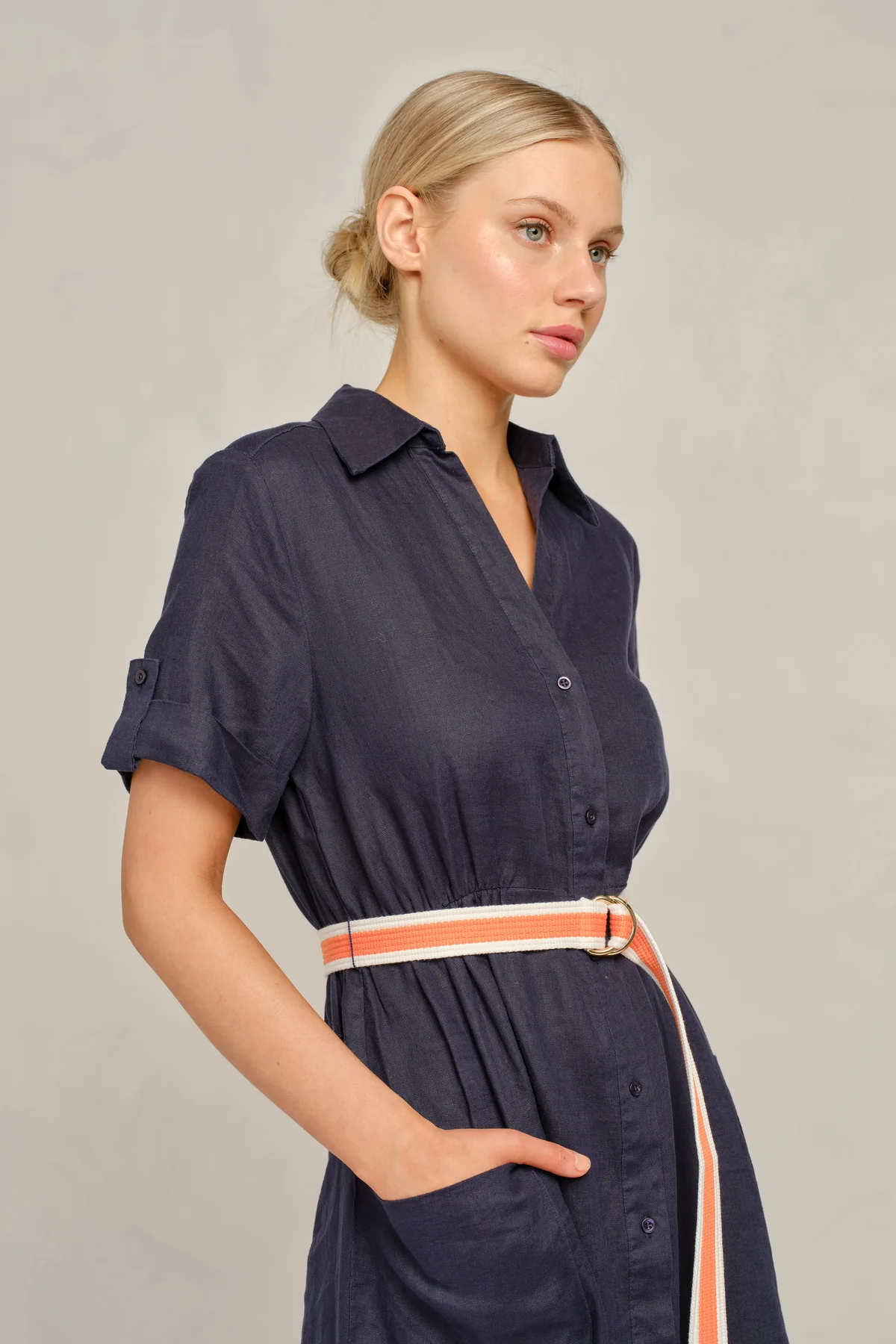 The Alessandra Quinn Linen Dress exudes timeless charm with its classic button-down, collared style.