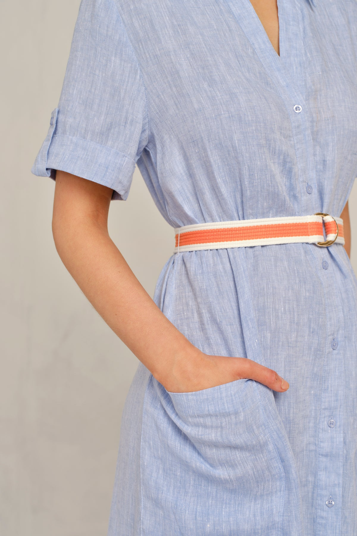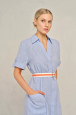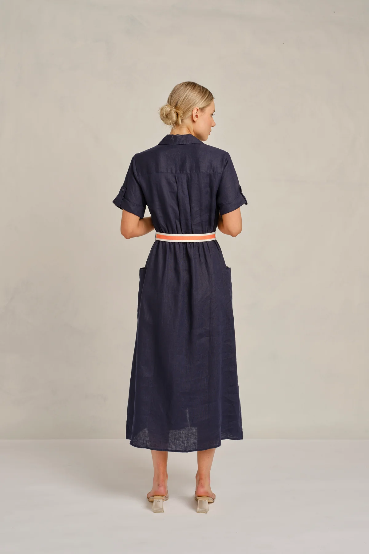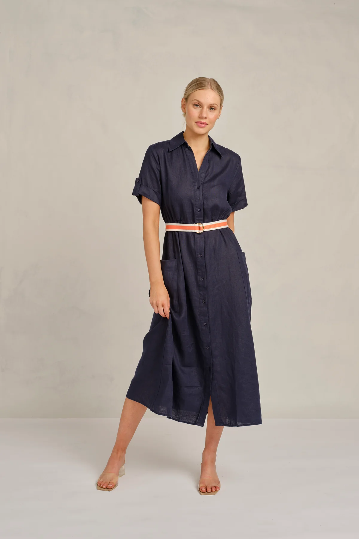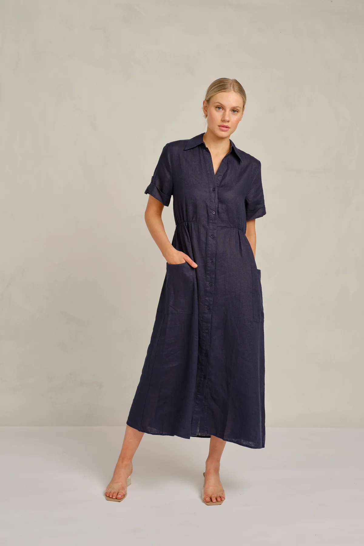 The Alessandra Quinn Linen Dress exudes timeless charm with its classic button-down, collared style.