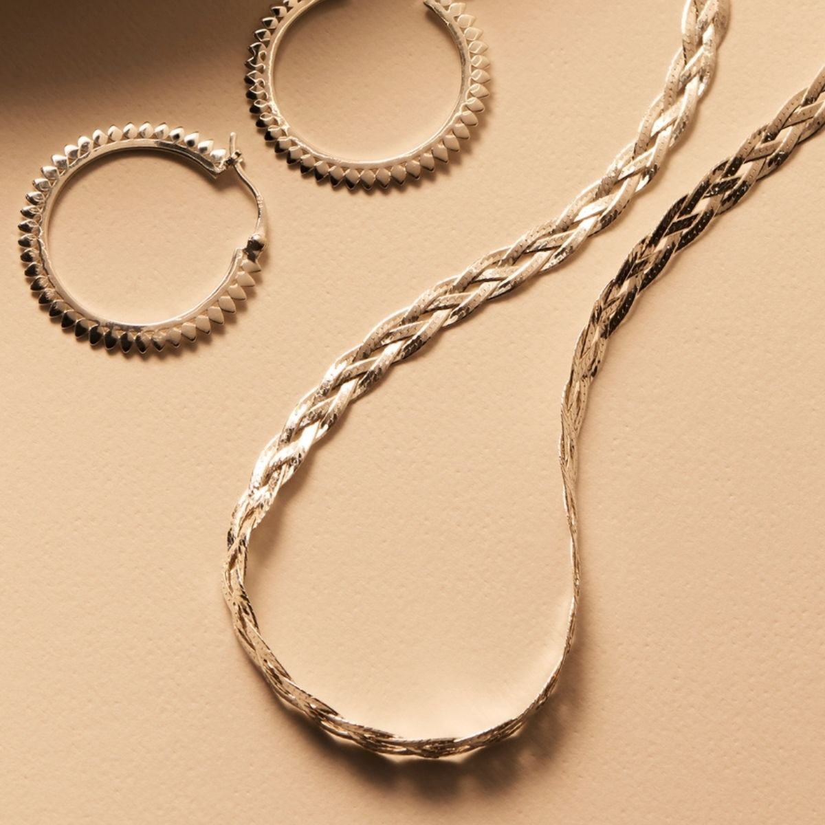 Plaited using four strands of diamond-cut herringbone chains