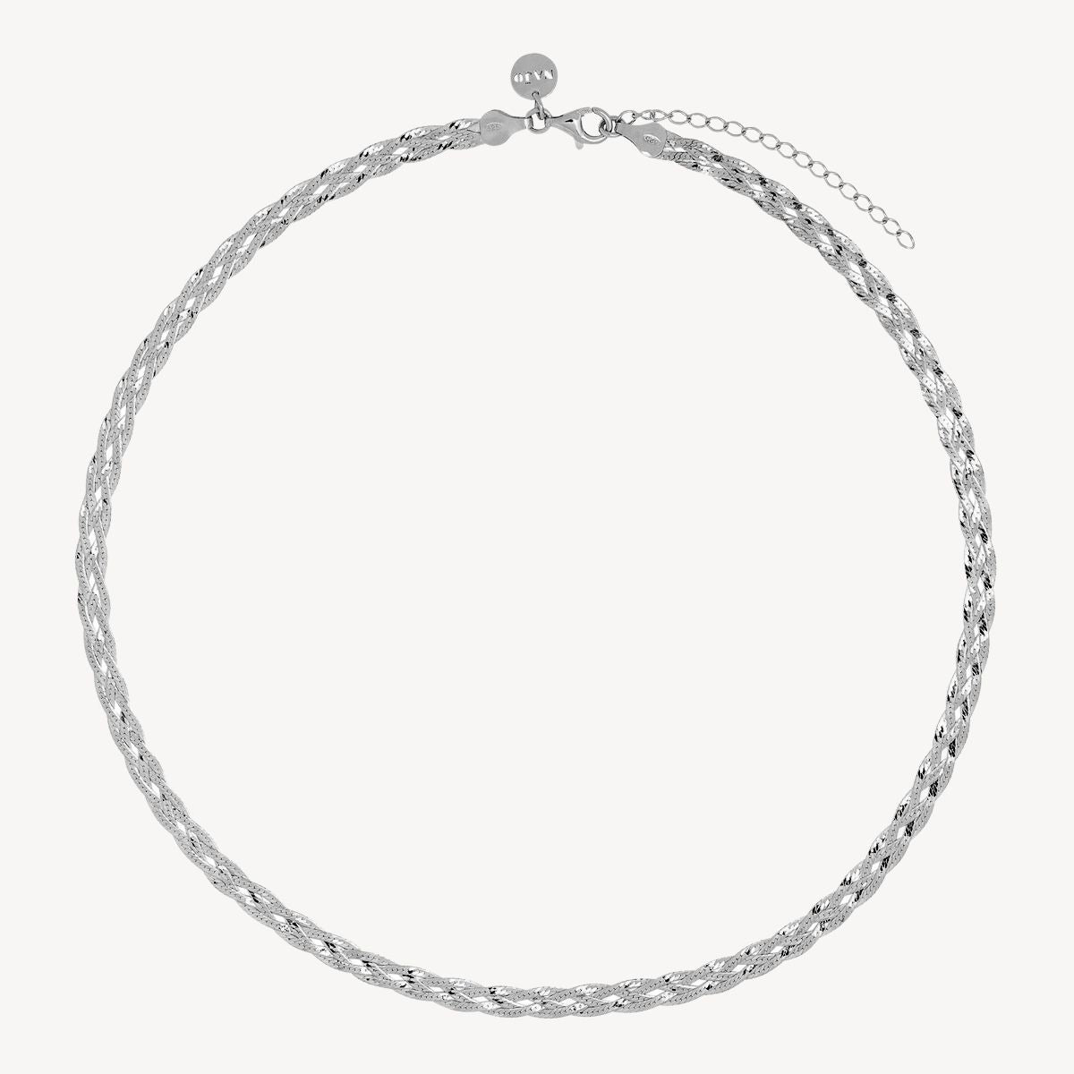 The exquisite NAJO Radiance Necklace is an unadulterated tribute to luminosity, meticulously crafted to enhance your beauty. It is lovingly handmade and perfected in Italy by a family-run workshop that has been a cherished part of the NAJO family for over two decades. Skilled artisans fashion the necklace by intertwining four strands of herringbone chains, resulting in an elegant woven design. The chains exude a sparkling radiance, courtesy of the precise diamond-cut faceting applied to each and every link.