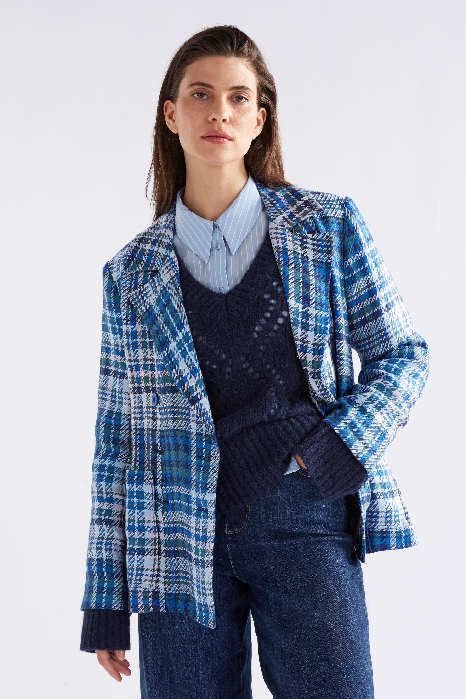 A modern take on the classic power suit, the Elk The Label Ranie Jacket blends sharp tailoring with effortless wearability. Crafted from yarn-dyed linen woven with subtle metallic threads, it catches the light for an understated shimmer. The double-breasted design, notched collar, and longline cut create a structured yet relaxed silhouette, enhanced by subtle shoulder pads for a polished finish. Pair it with the matching Ranie Pant for a statement two-piece look, or layer over a black dress for an instant pop of colour and confidence.