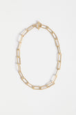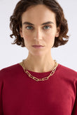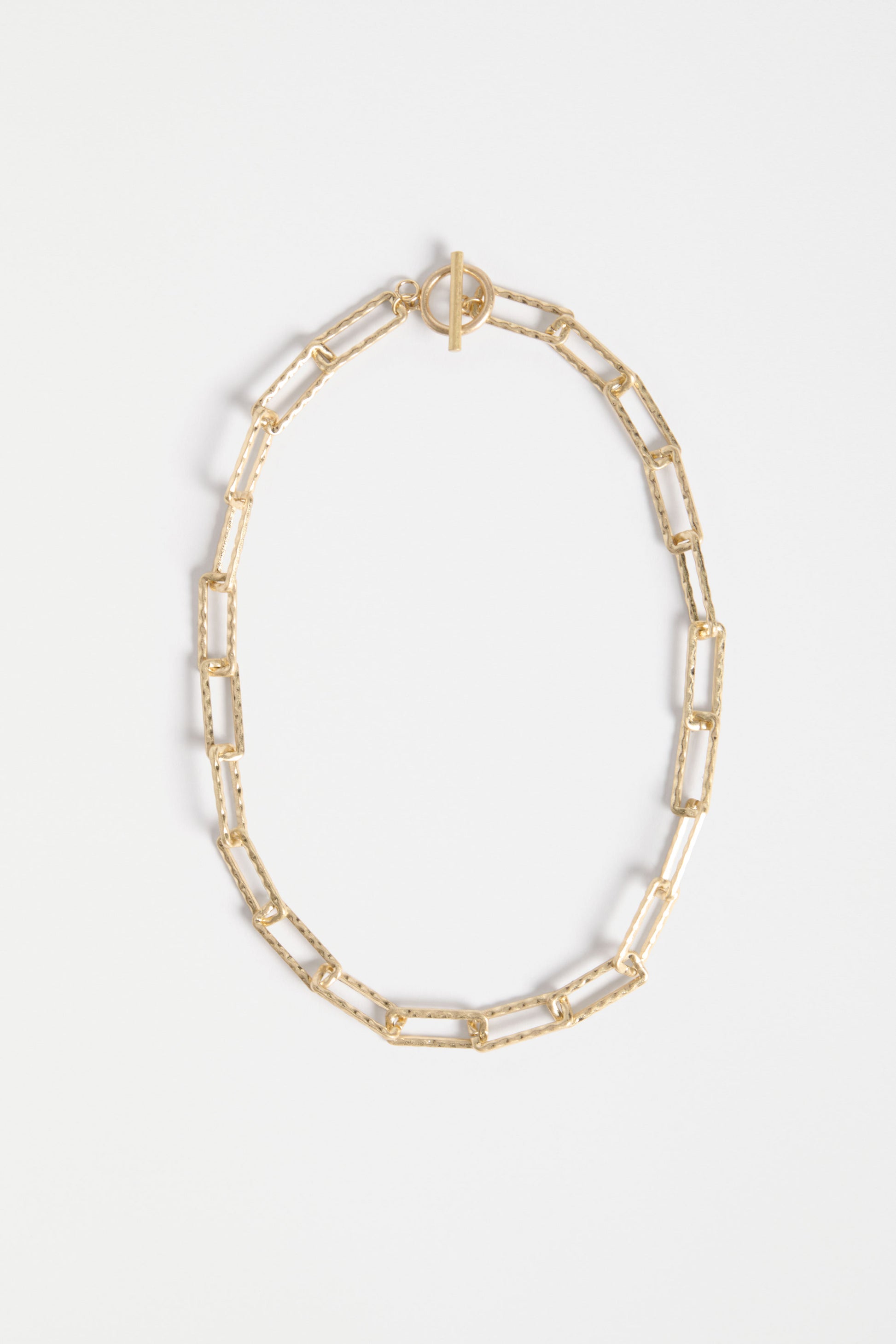 Add a bold, geometric touch to your look with the ELK Ringva Necklace. Featuring rectangular links with a textured hammered finish, this short, fixed-length necklace sits elegantly at the collarbone. The gold tone offers timeless versatility, while the toggle clasp adds a subtle statement detail at the back.