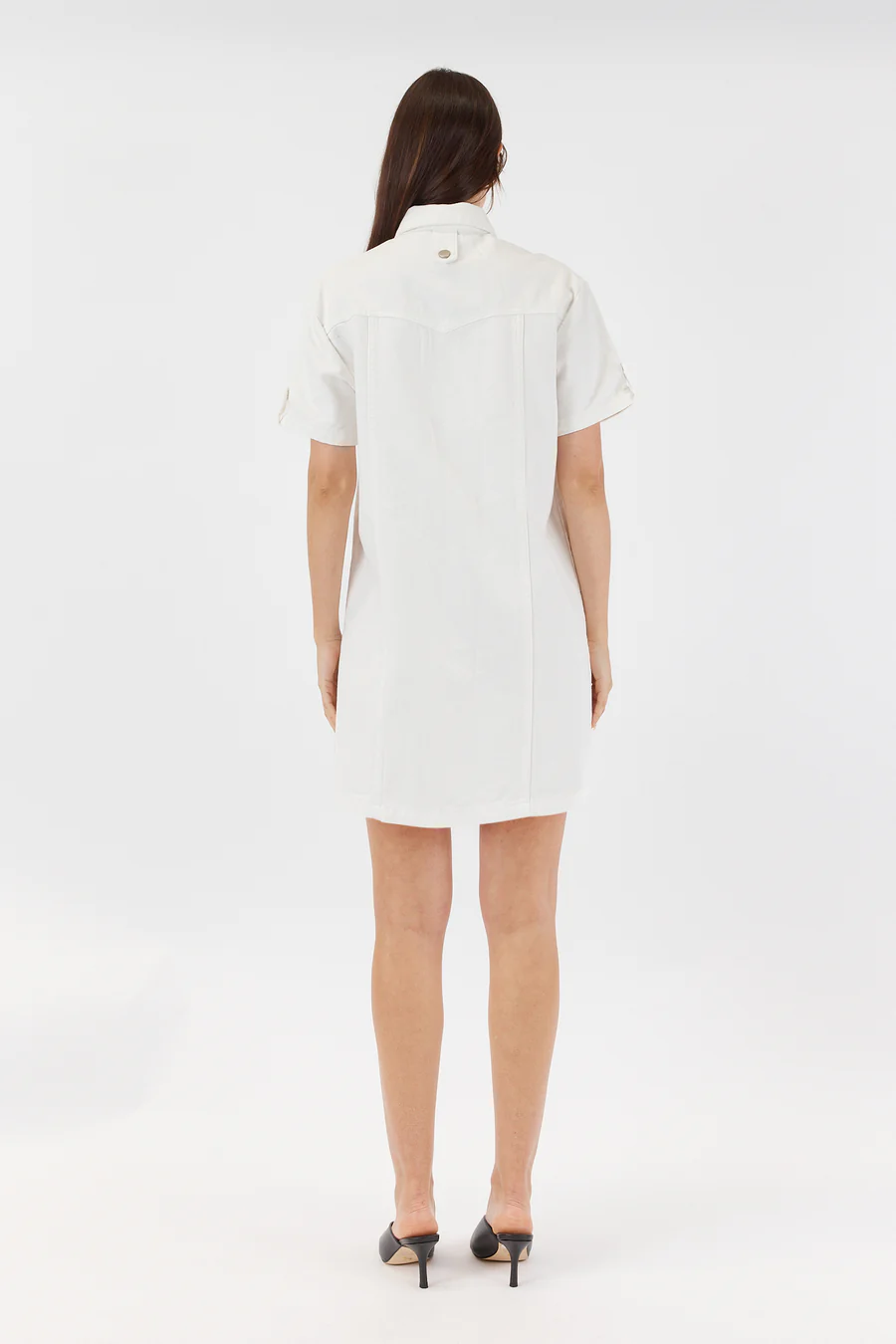 The Sarah Denim Mini Shirt Dress from Sofia Irina offers a laidback, relaxed shirting silhouette with a rigid denim feel. This dress is designed to make a statement, offering a versatile and stylish option for all occasions.