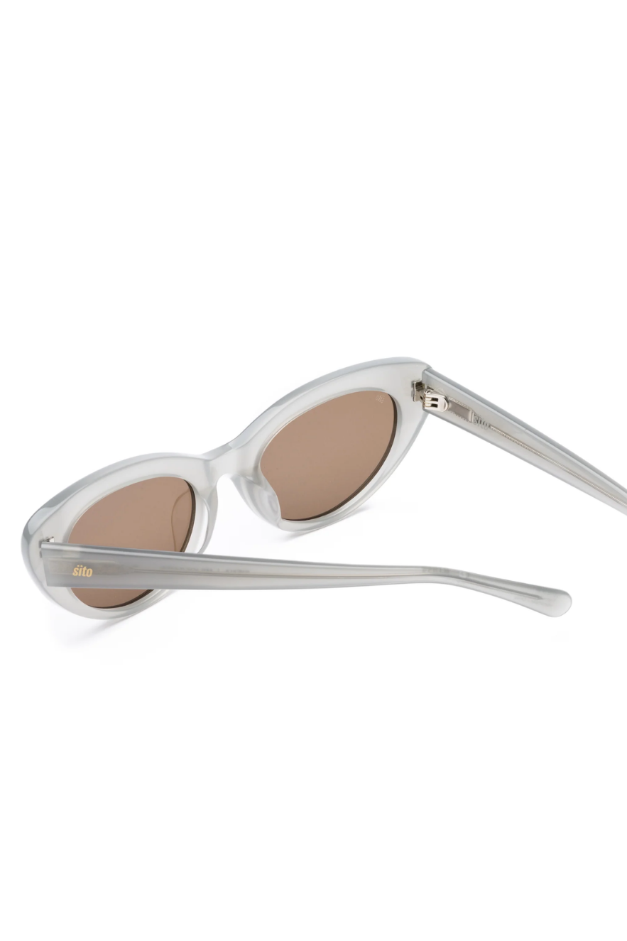 The Siena - Milky Sage Coffee by Sito combines vintage elegance with modern appeal, making it your essential cat-eye frame for any occasion. The oval cat-eye silhouette is timeless and flattering, designed to enhance a variety of face shapes, including smaller square, oblong, heart, diamond, and oval faces. Crafted with handmade, plant-based acetate, these sunglasses are not only stylish but also sustainable.