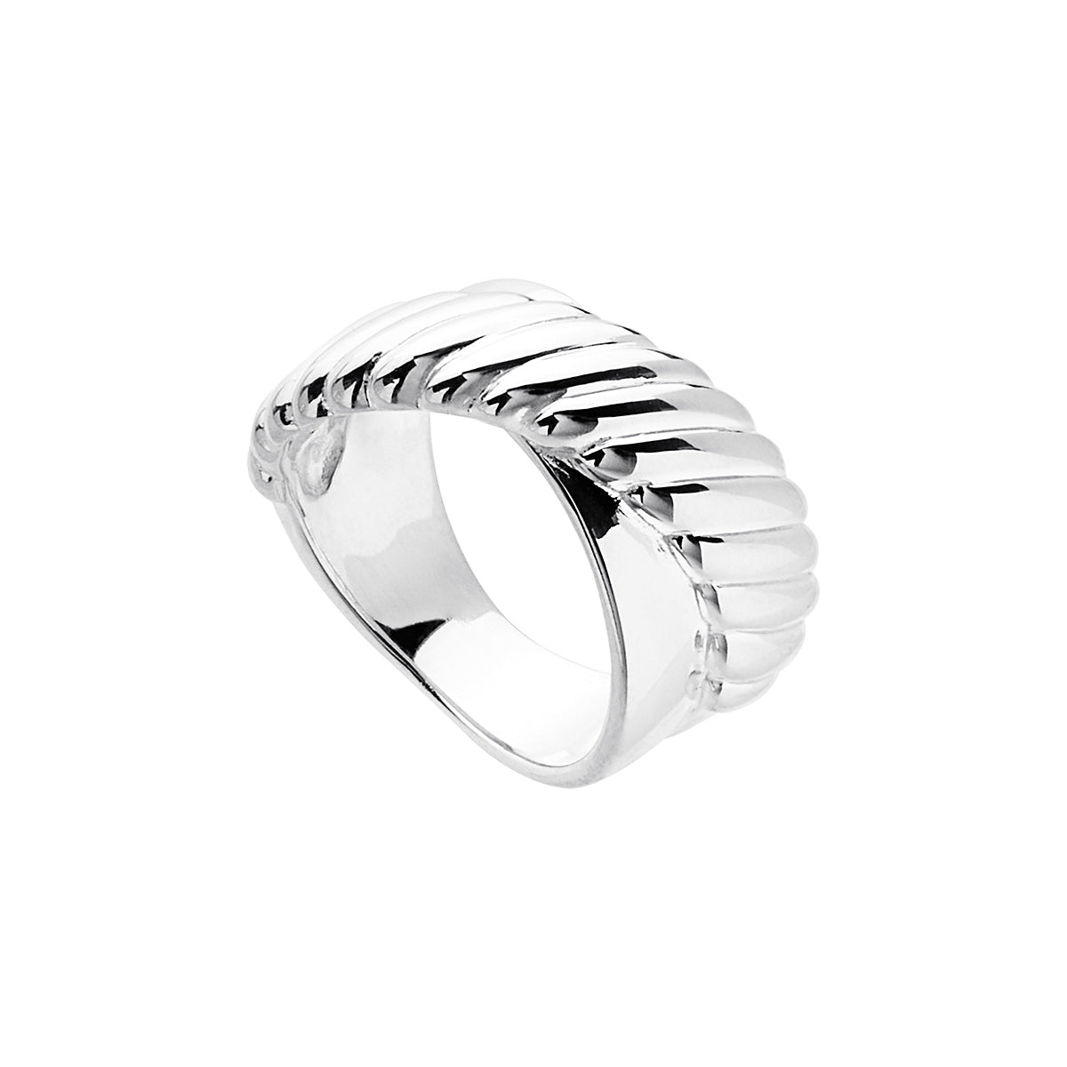 Handmade in Thailand, the solid silver NAJO Tidal Ring features a unique cross-over design with a tapering band. Measuring 12mm, it showcases a ridged pattern on one side of the overlapping design, adding an elegant touch to your look. Elevate your style with the NAJO Tidal Ring, a timeless addition to your jewellery collection.