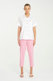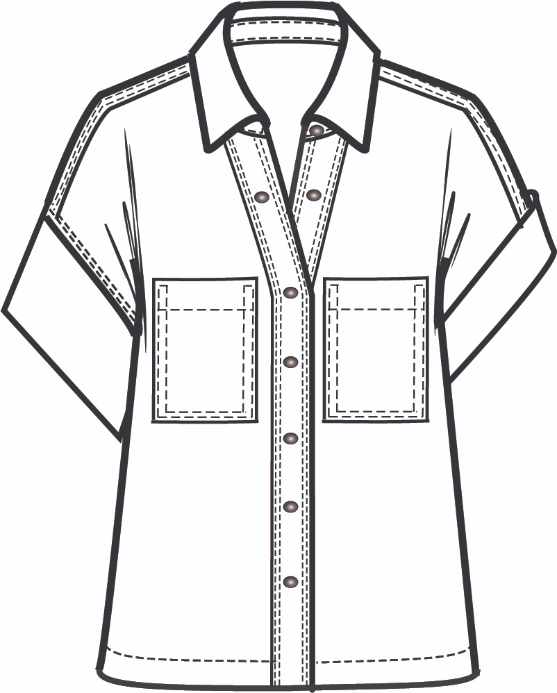 Cut from Microprene. A crisp, cotton rich, high stretch fabrication with a polished finish. The 'Stud Shell Shirt' from Mela Purdie offers a modern wardrobe addition with cargo pockets and stud accents.