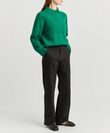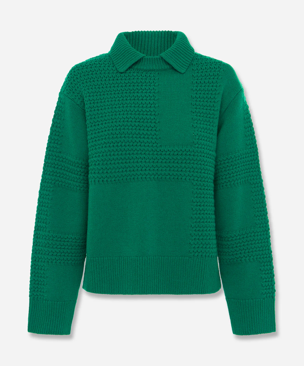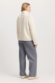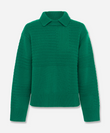 The versatile neckline—featuring a crew base and classic collar—can be worn folded for a polo-inspired feel or stood up as a soft funnel neck. Ribbed finishes at the cuffs, hem and neckline add structure to its relaxed silhouette.