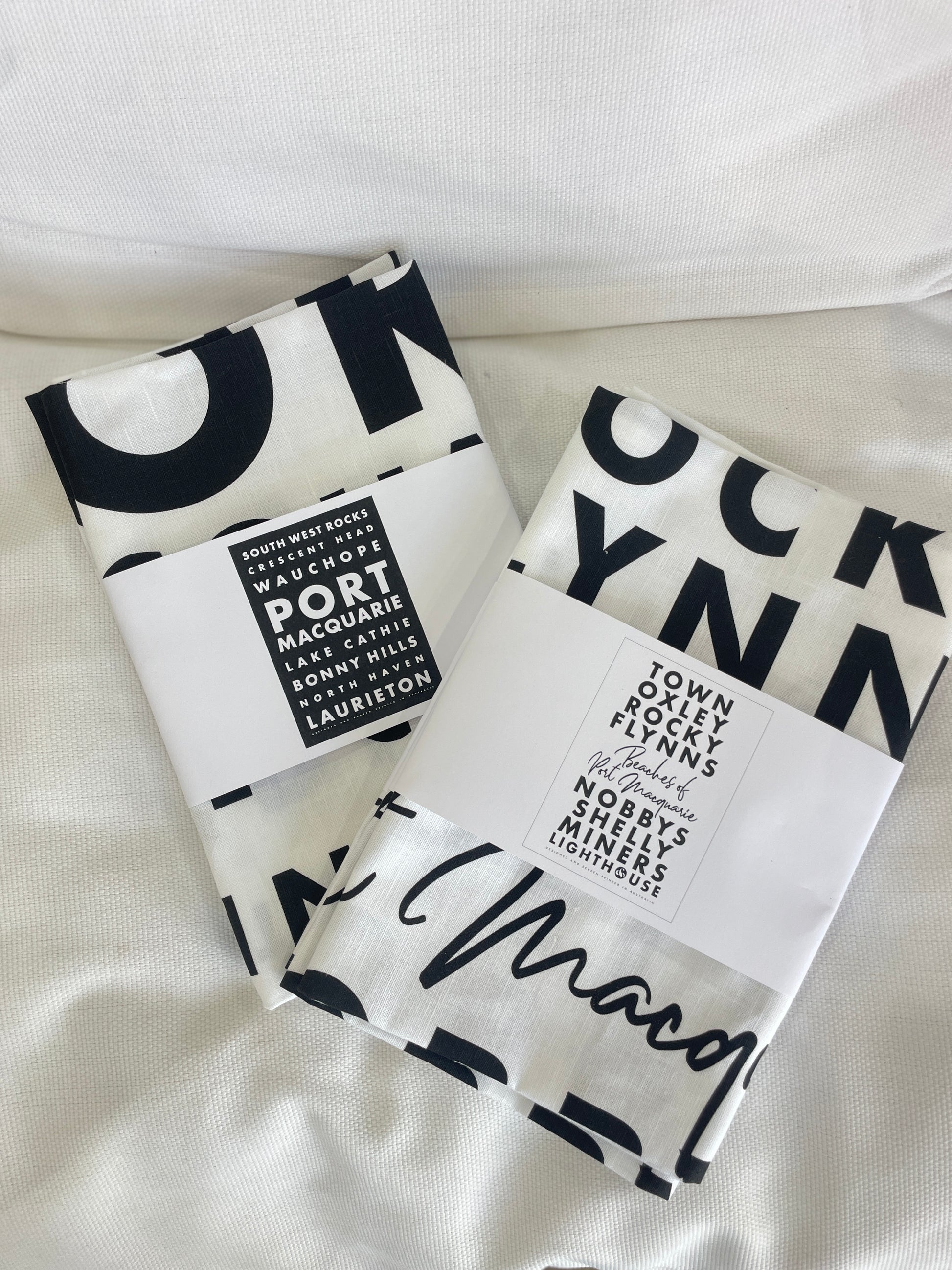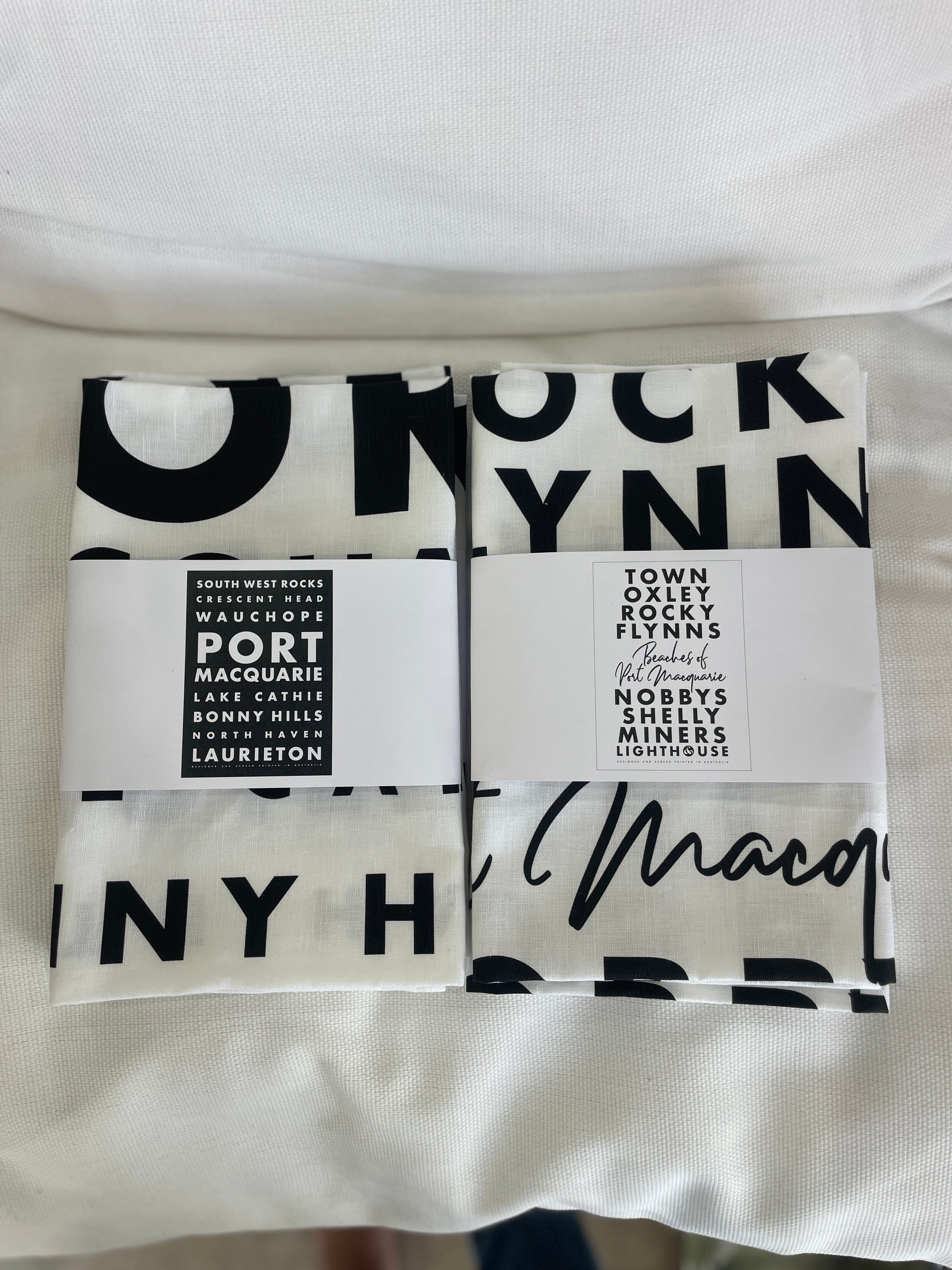 Designed in house and printed in Australia on a cotton/linen blend tea towel, these tea towels have been a hit with both locals and tourists alike.
