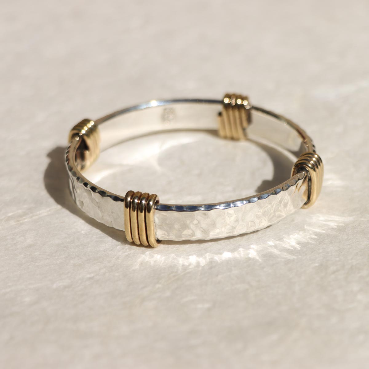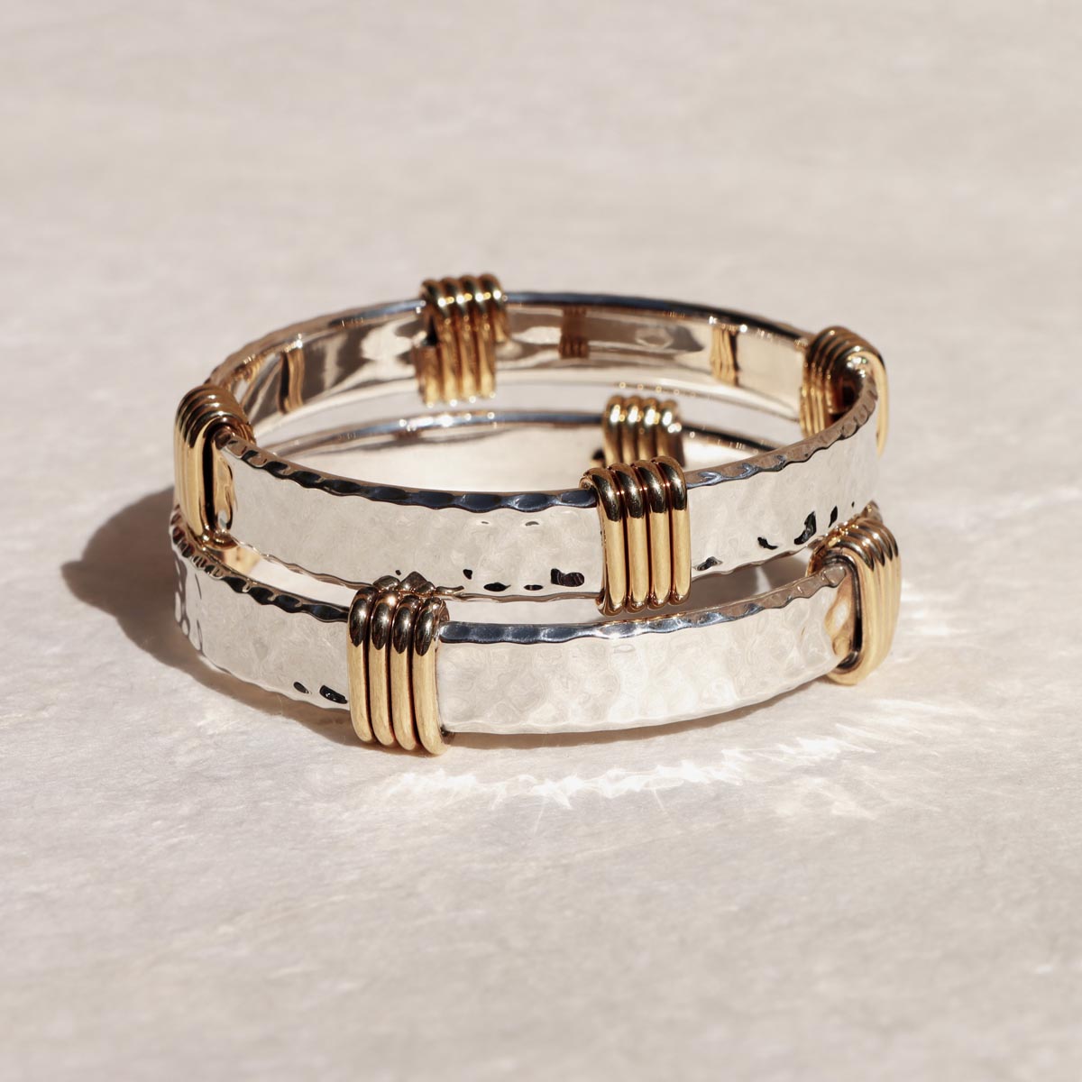 If you're looking for a sterling silver companion to escort you to every day-to-night event, this two-tone beauty from NAJO Jewellery will happily oblige. Tumbaga twines and a hand-beaten finish add soft hues and texture to this bangle, creating a versatile and stackable delight.