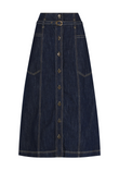 The Morrison Tyler Denim Skirt is crafted from mid-weight cotton denim in a timeless Indigo wash. Designed with a mid-rise waist and exposed button front, it features statement patch pockets and a flattering A-line silhouette that blends utility with effortless style.