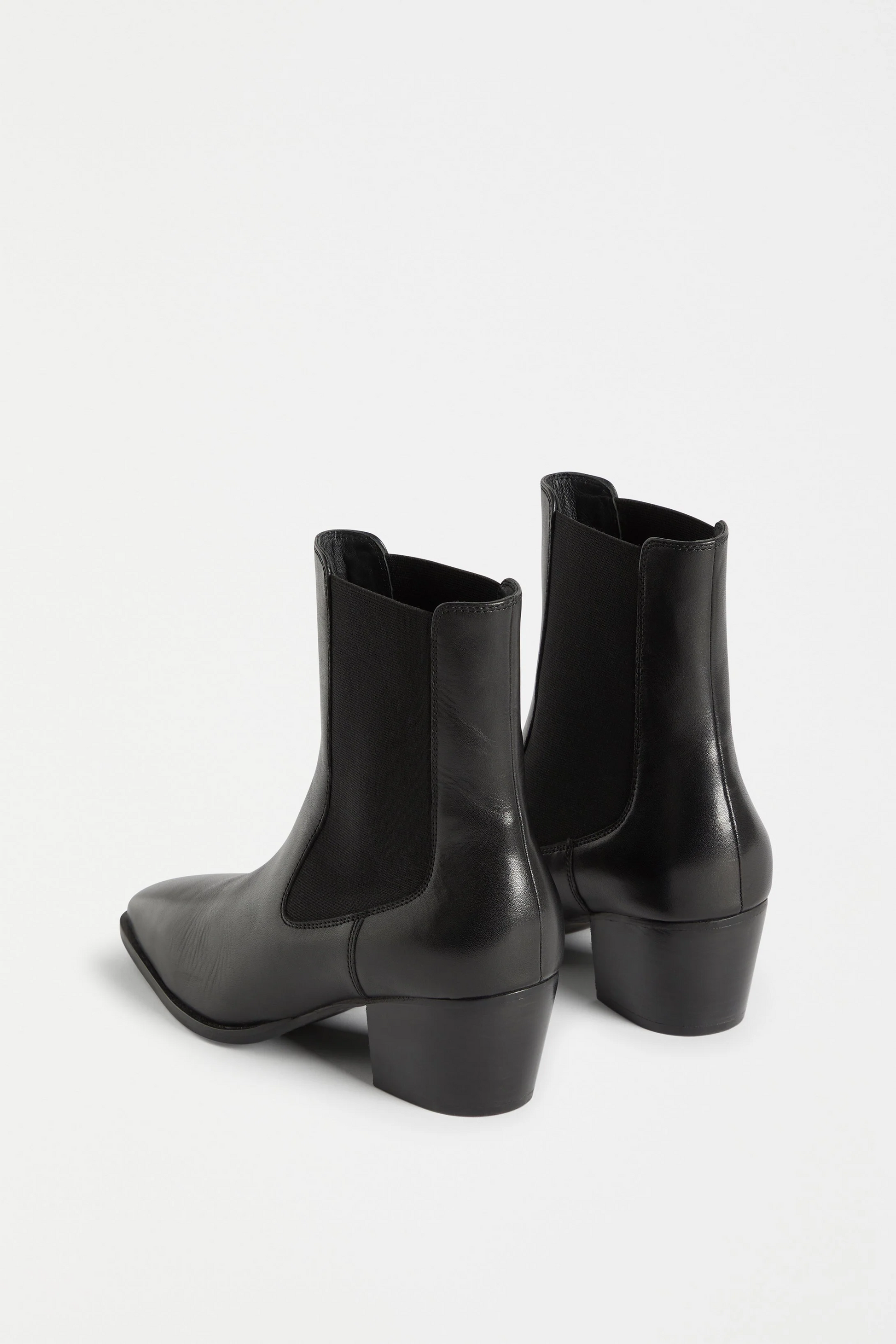 The Vastra Boot from Elk The Label is a classic heeled boot featuring a pointed square toe, exposed elasticated gusset for ease, and a mid-height angled heel.