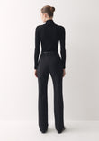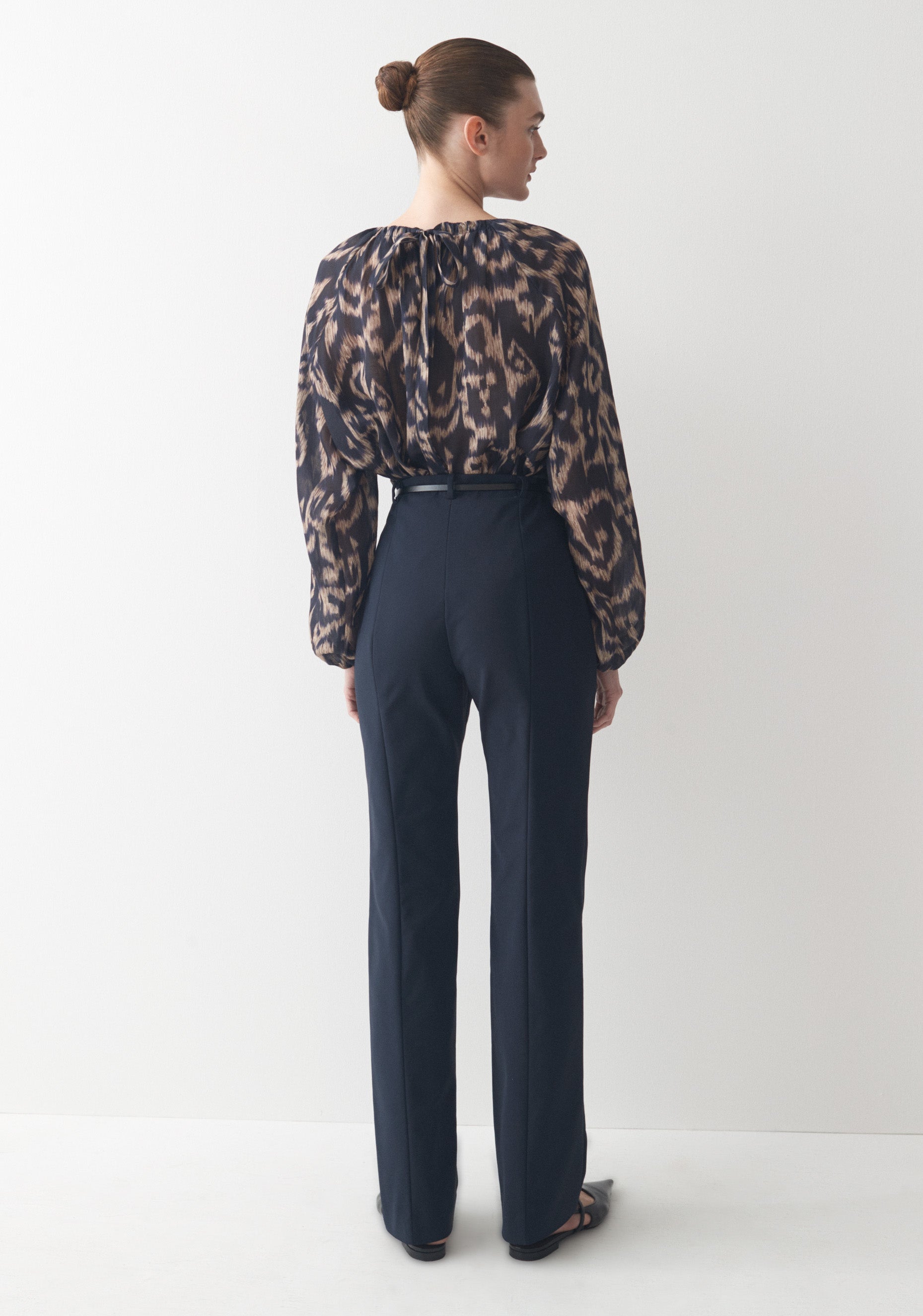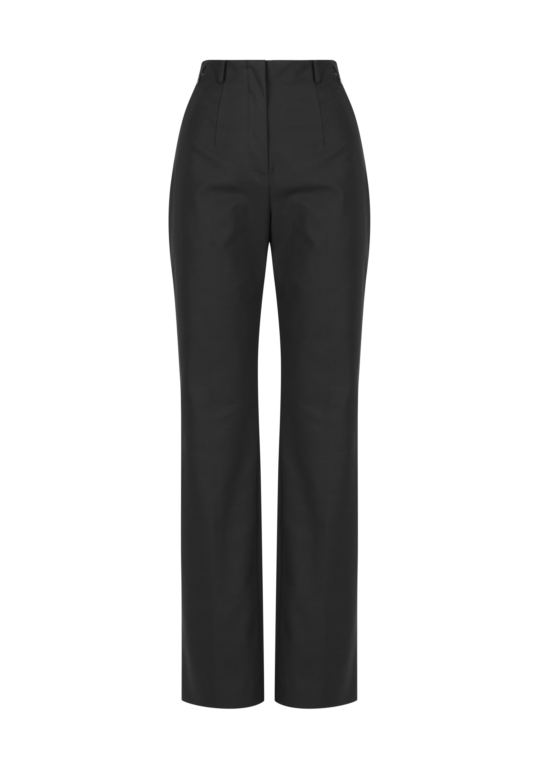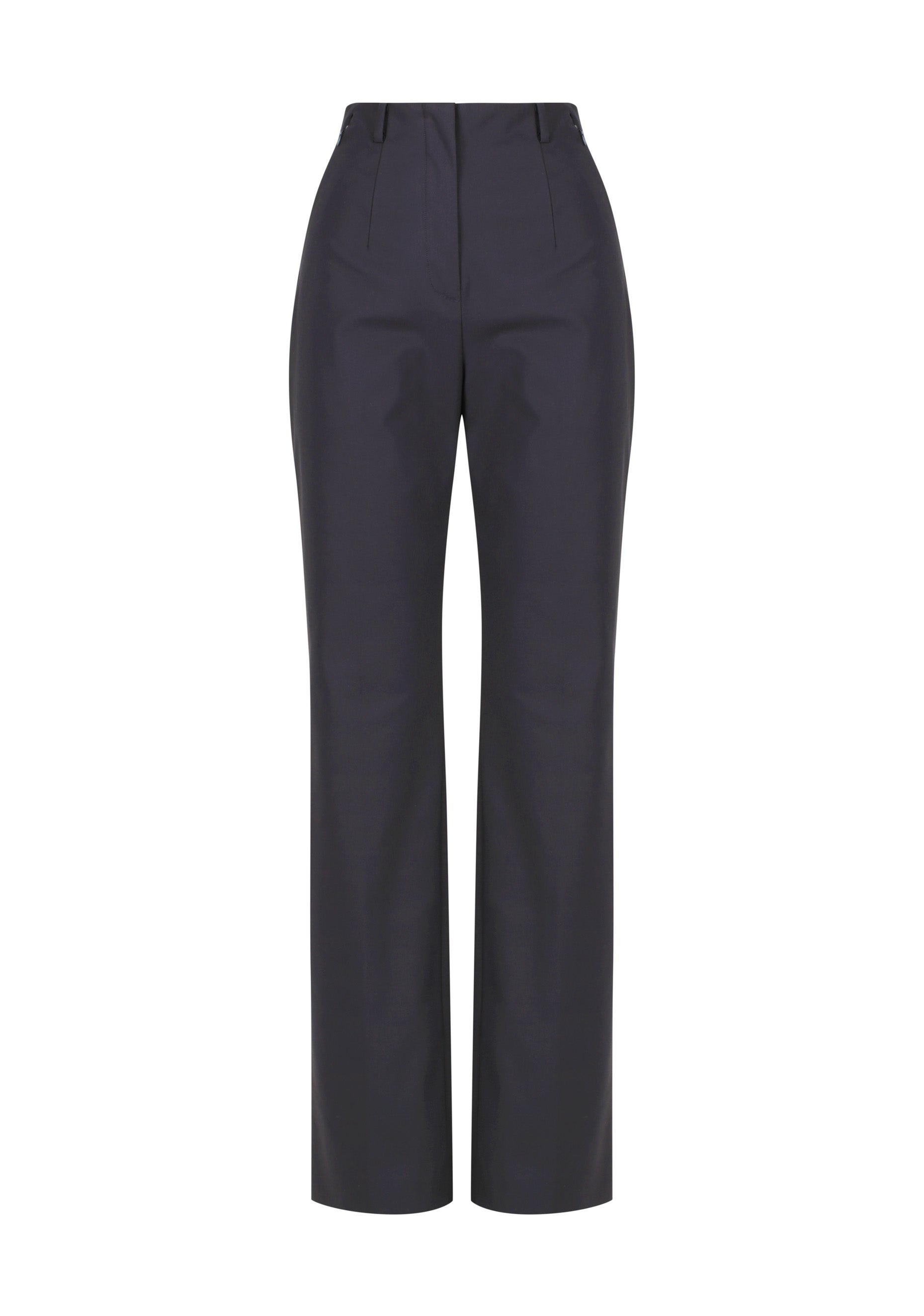 Crafted from a technical stretch cotton blend, these trousers offer both comfort and style. With a high rise and belt loops, they provide a flattering fit. The fly front and invisible zip front hip pocket add practicality, while the straight leg and back leg seam create a sleek silhouette.