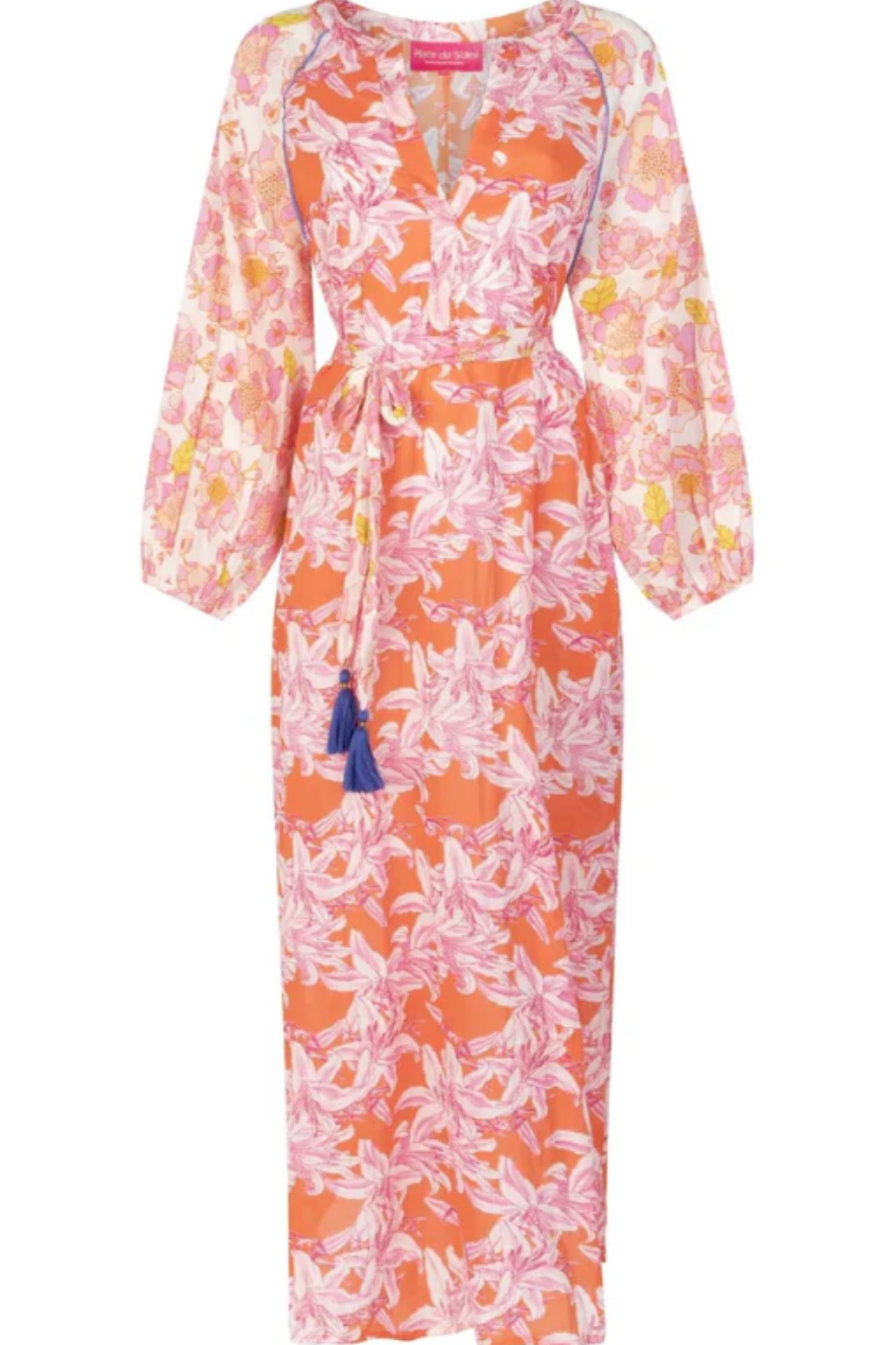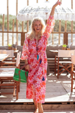 Bring vibrant summer style to your wardrobe with the White Pink Rosa Flower Dress by Place Du Soleil. Crafted from lightweight, breathable cotton, this long sun dress features a Mandarin-style collar, long sleeves, and a full lining for comfortable all-day wear. The all-over floral print adds a cheerful, colorful touch, making it a perfect choice for casual outings, weekend strolls, or everyday summer elegance.