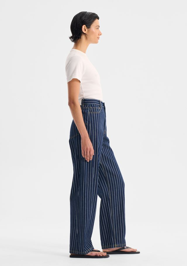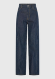 Crafted from pure cotton denim in a classic stripe, the Morrison Wyatt Jean offers a fresh take on everyday denim. Designed with a high-rise waist, traditional five-pocket styling, and a fly front, it features a unique side leg panel and a modern barrel-leg silhouette. Full-length for versatile wear, this piece blends structure with effortless cool.
