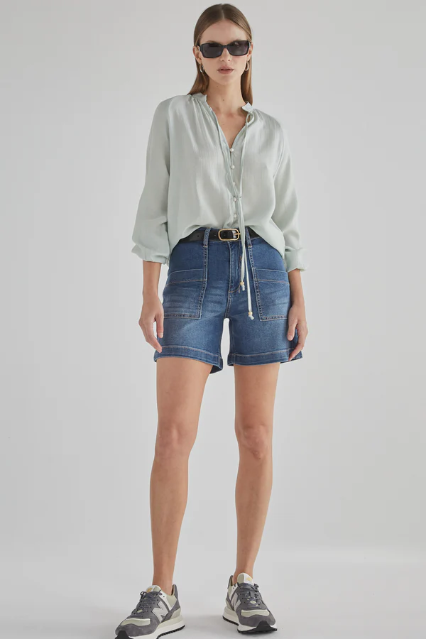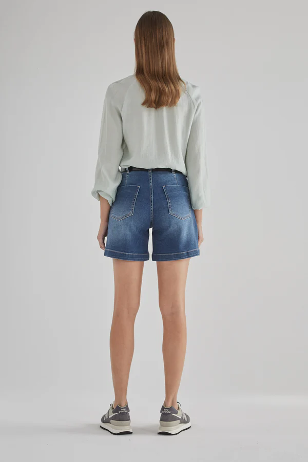 The Dricoper Zaplin Stretch Denim Shorts offer a flattering high-waisted design with a relaxed fit through the thigh for ultimate comfort and style. Made from stretch denim with contrast topstitching and signature front pockets, they combine timeless detailing with a modern silhouette.